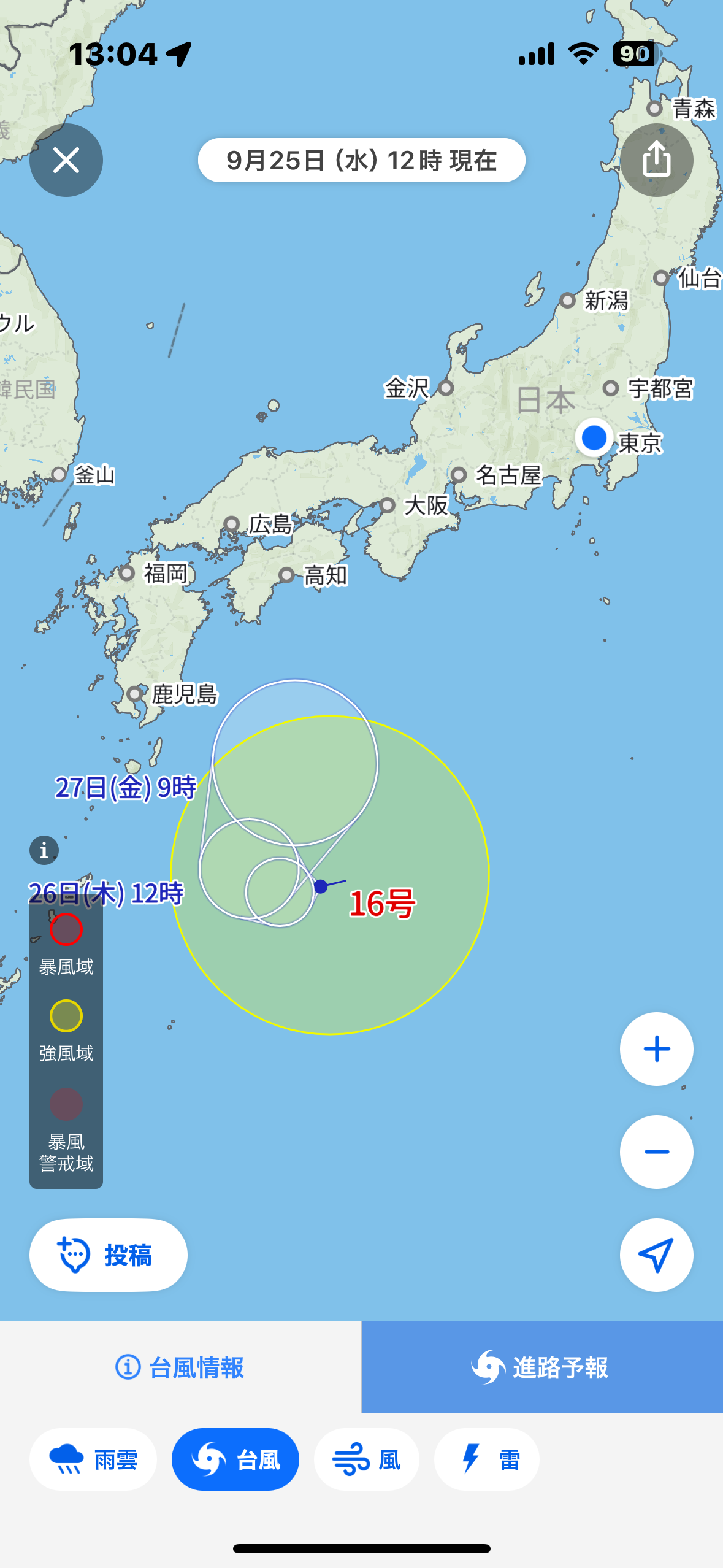台風16号発生。高知沖。