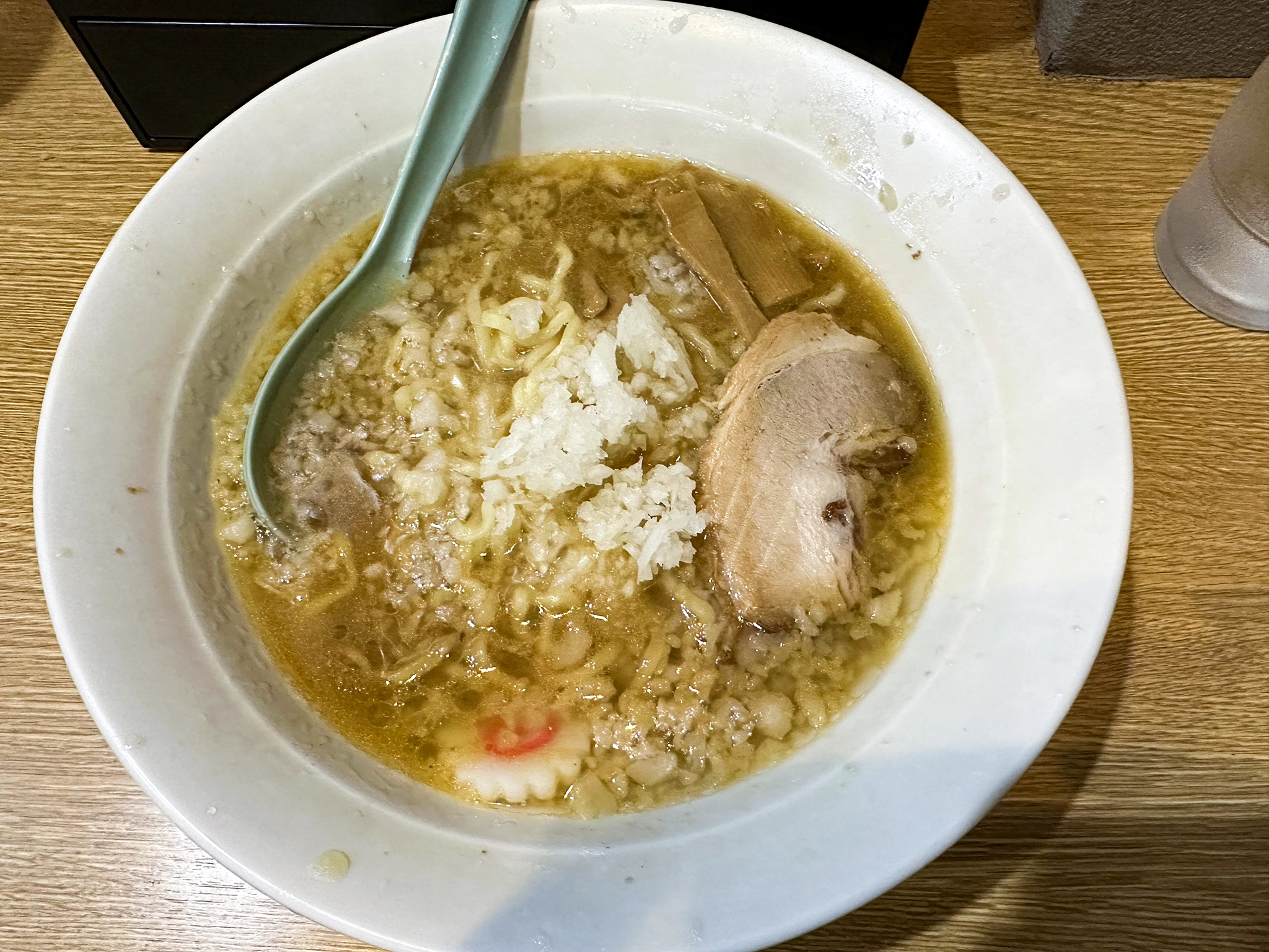 なのでラーメンも白米入れたら美味いだろうなっていうような味ではなく、ラーメンだけでも塩分が物足りないくらい。