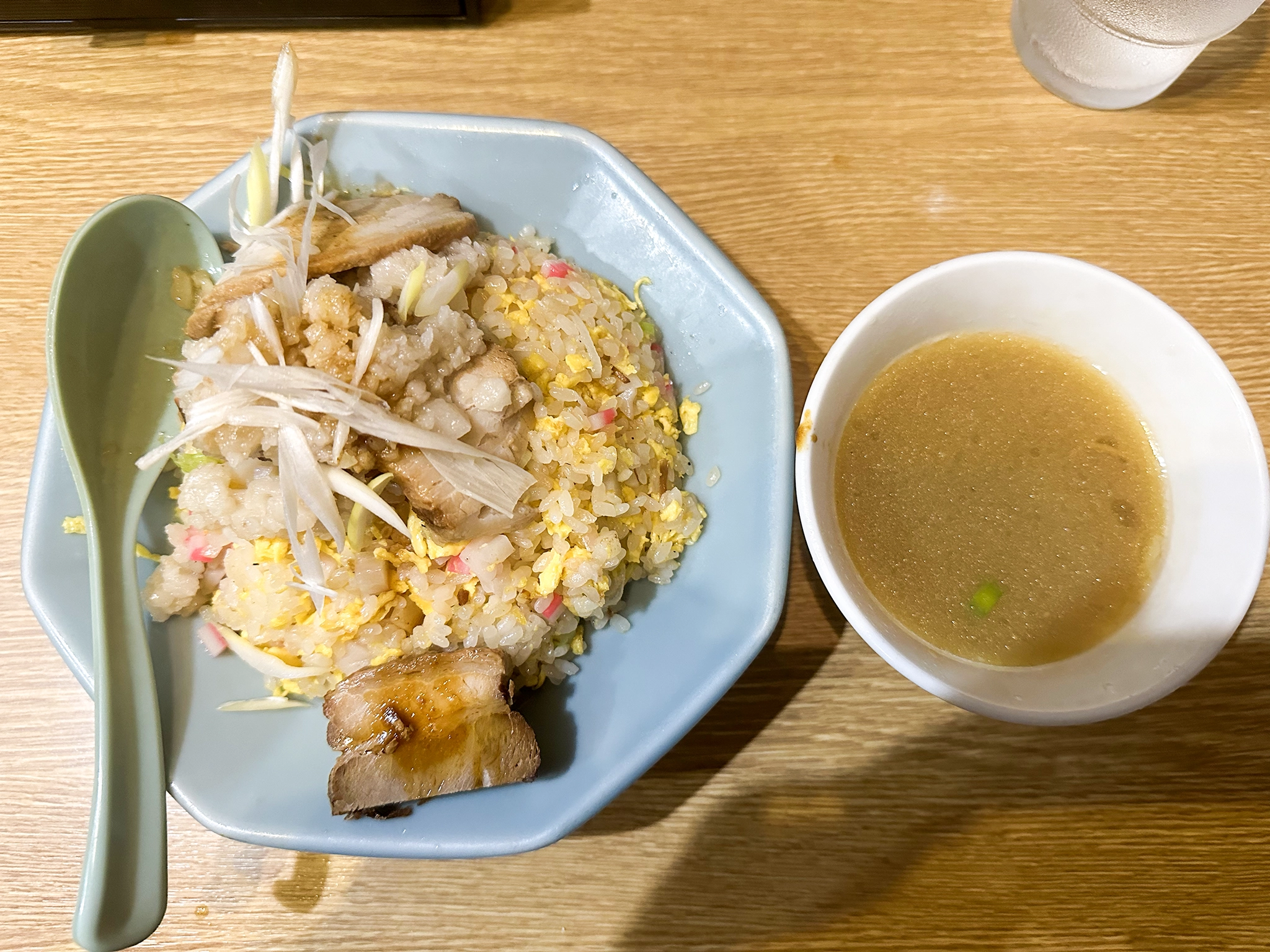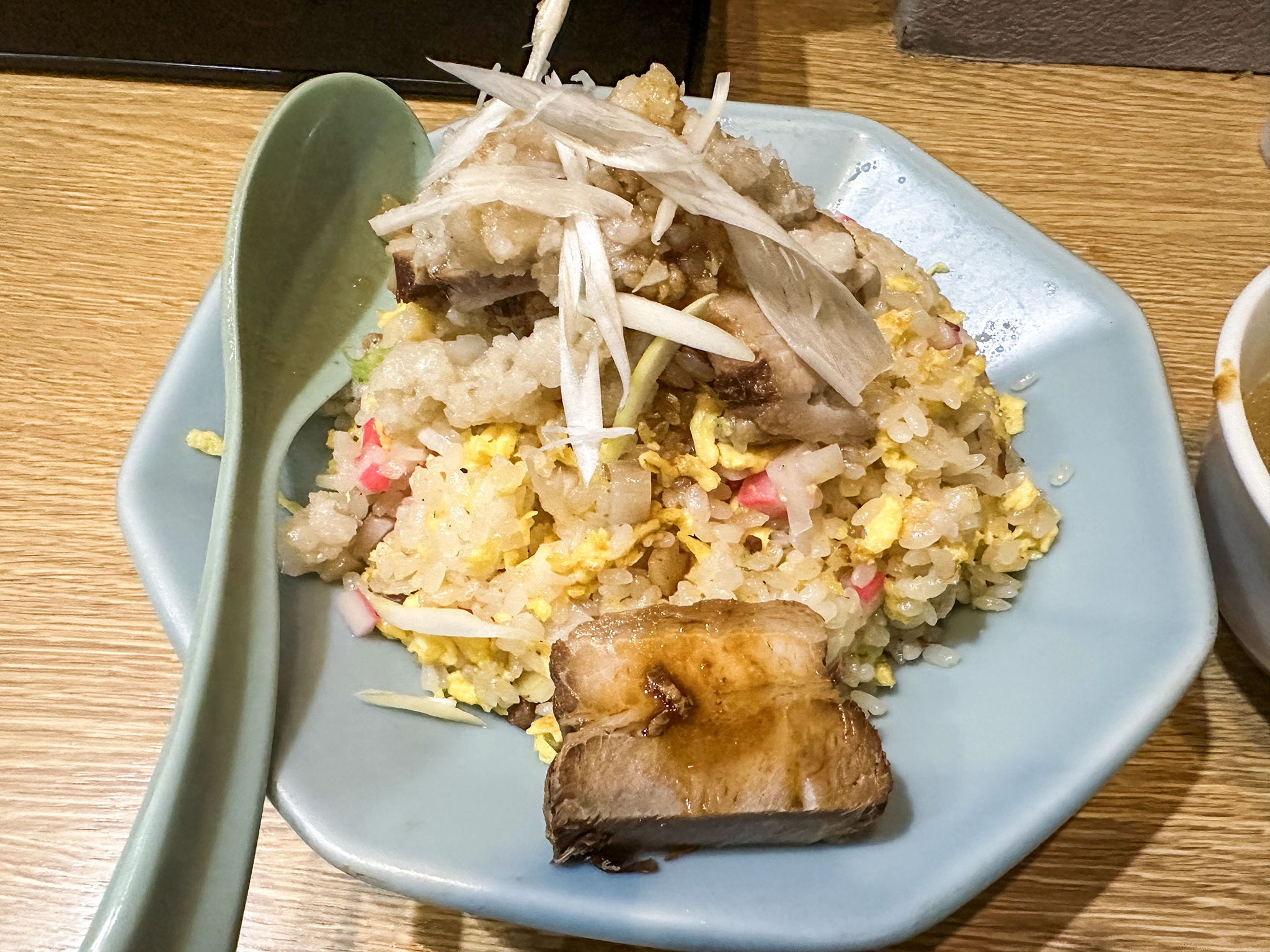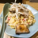 そして脂は申し分ないのだが、塩分がすっごい少ない。肩透かしというか、健康志向?って思うくらい塩気が効いてない。その分、脂の甘さは堪能出来るのではあるが……せっかく健康に悪い食べ物なのだから塩分もがっつり効いて欲しかったなぁ。それこそ、炒飯食べながら白いご飯が食べたくなるくらいに。
