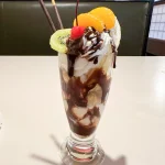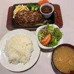 でもハンバーグの肉汁はかなり多く、イイ感じ。デザートのパフェはなんか昭和チック。