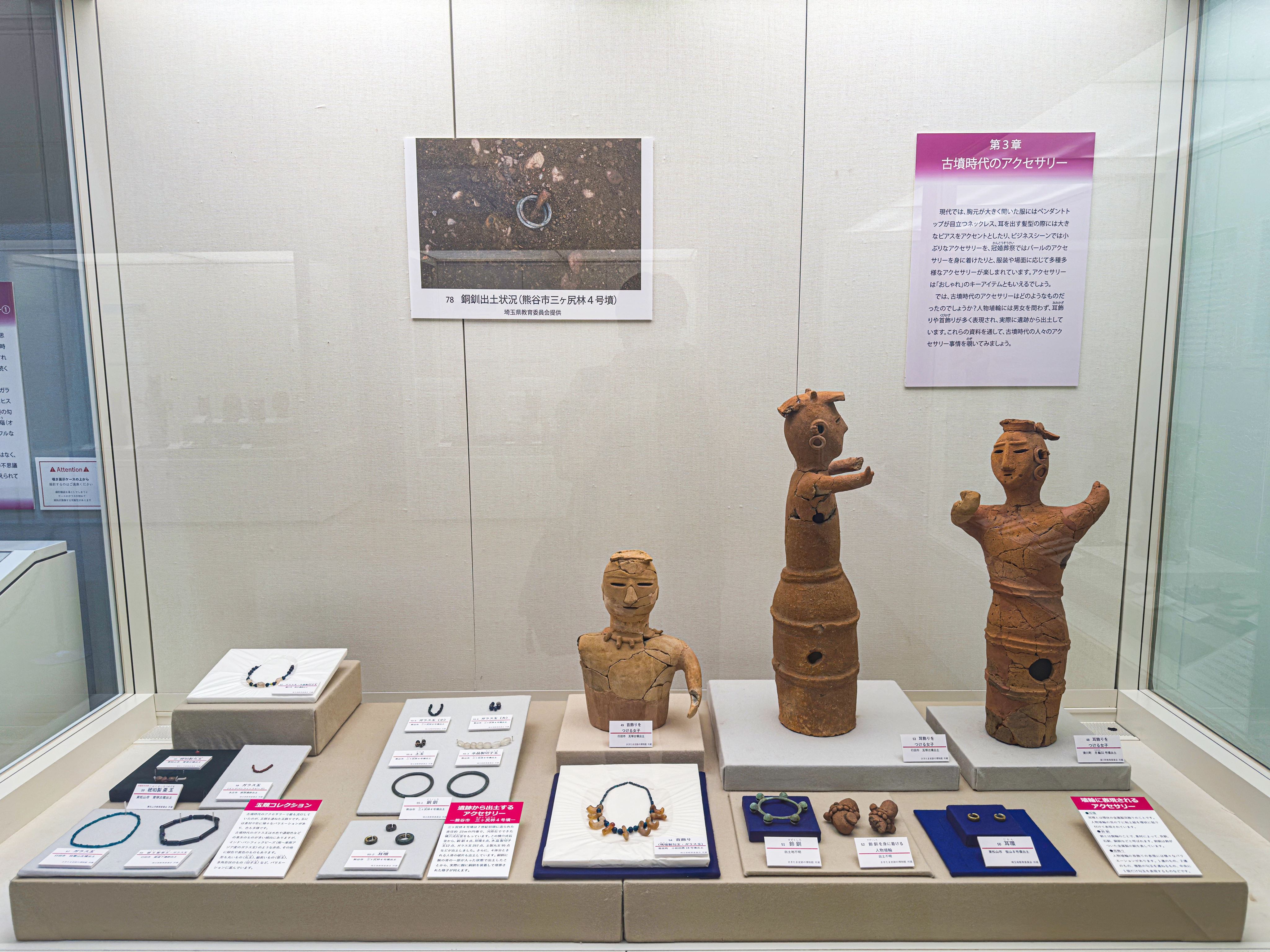 まずは展示物から。もともとこの博物館に行こうと思ったきっかけは『古墳時代の装い-おしゃれな古代人-』という規格があったからだ。もちろん、この博物館自体は前から行きたかった場所ではあるんだけど……なかなか腰が重かった(汗)。実は都内でも行きたい郷土資料館とかもけっこうあるのよね。