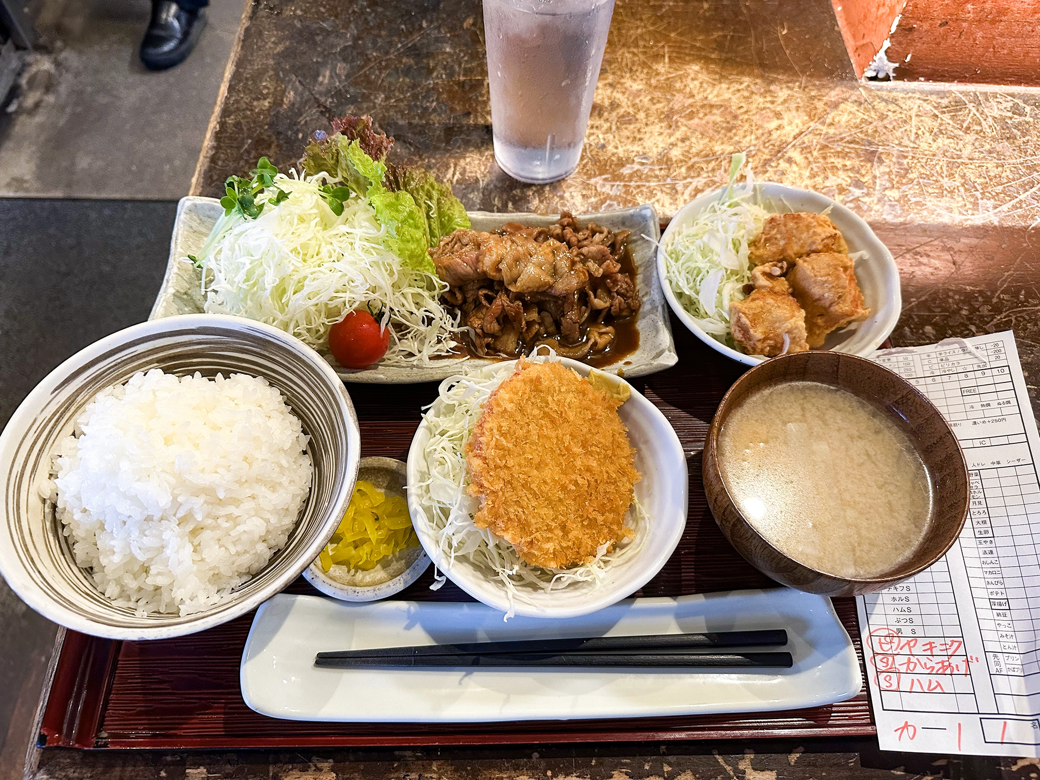 なんかメニューがいろいろおかずが選べるようになってて楽しい。とりあえず牛焼肉とハムカツとからあげを頼んでみた。