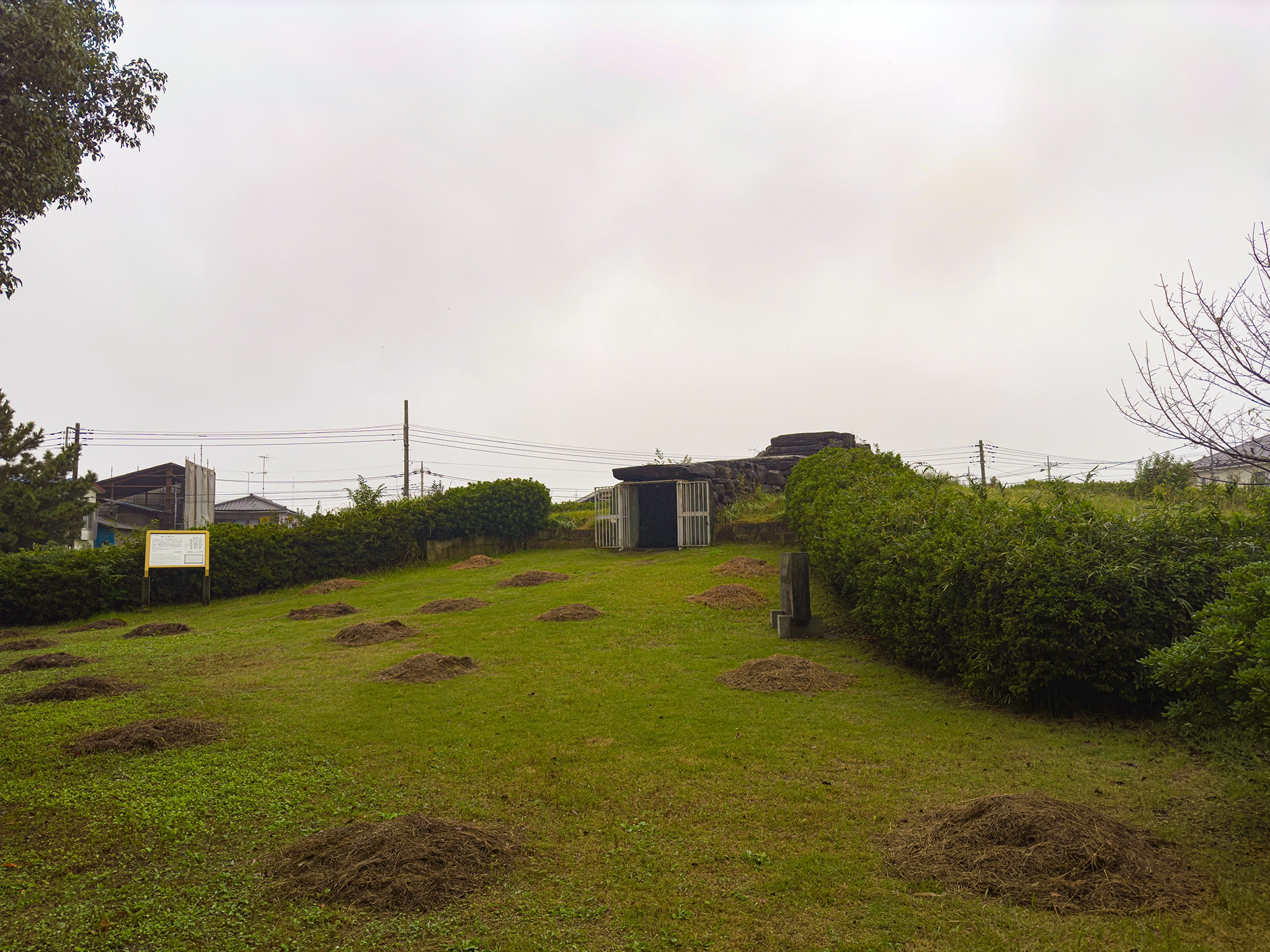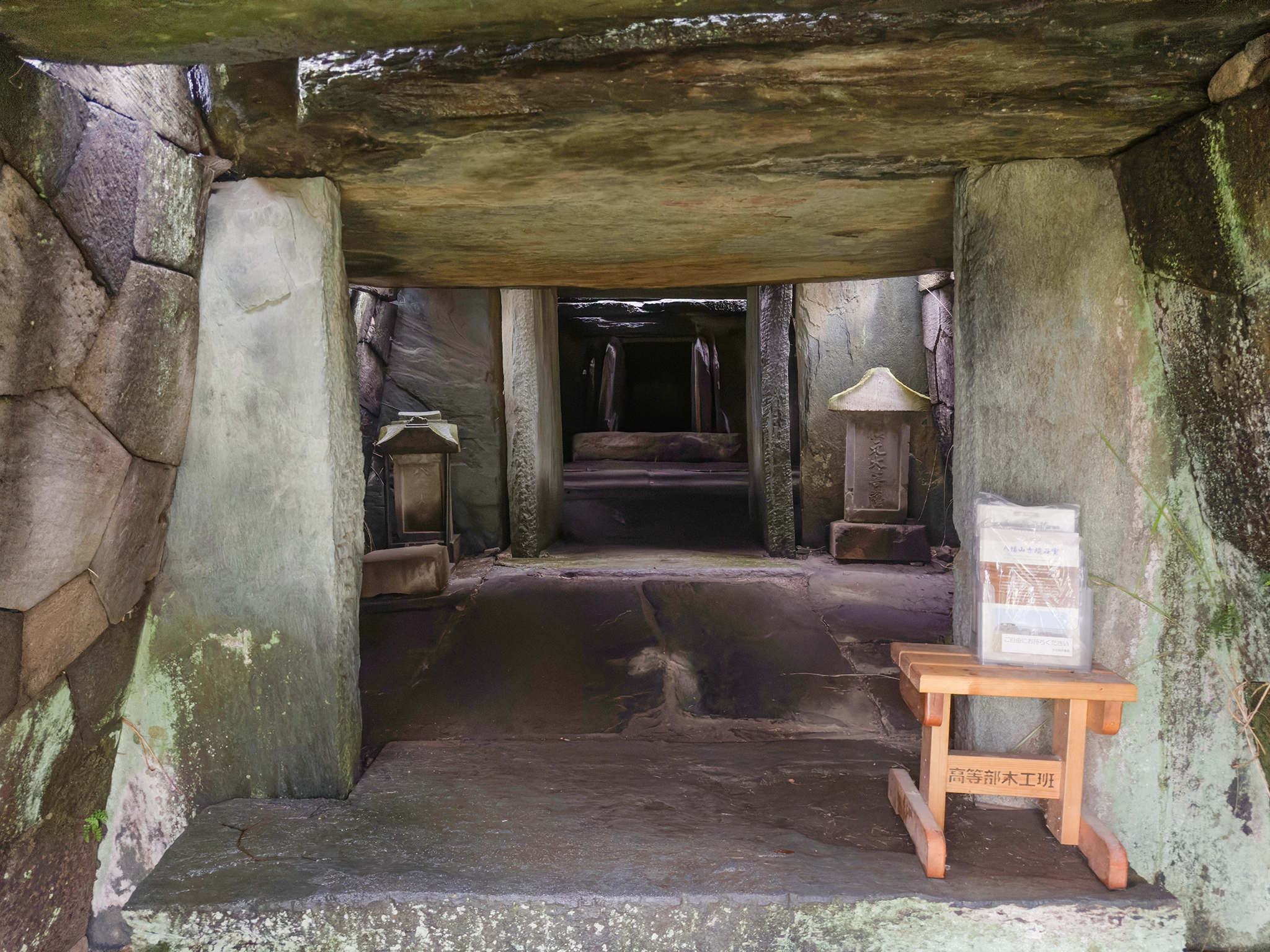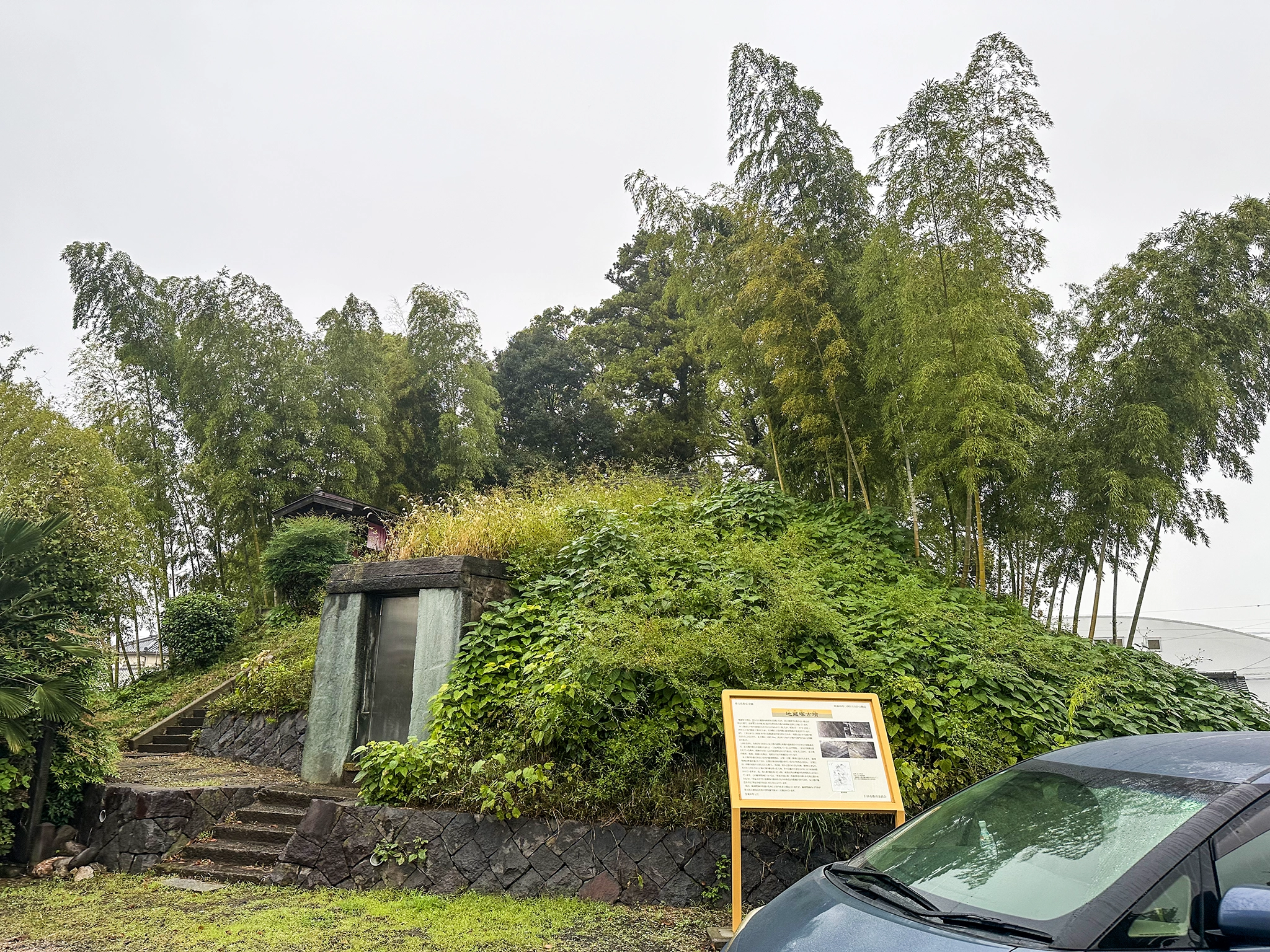 こちらは先の八幡山古墳よりもさらにコンパクト。これぐらいの墓ならちょっとしたお金持ちが作ってもおかしくないかも的な。こちらは中は残念ながら閉ざされていたが、古墳の上に洞があってそちらは撮影できた。