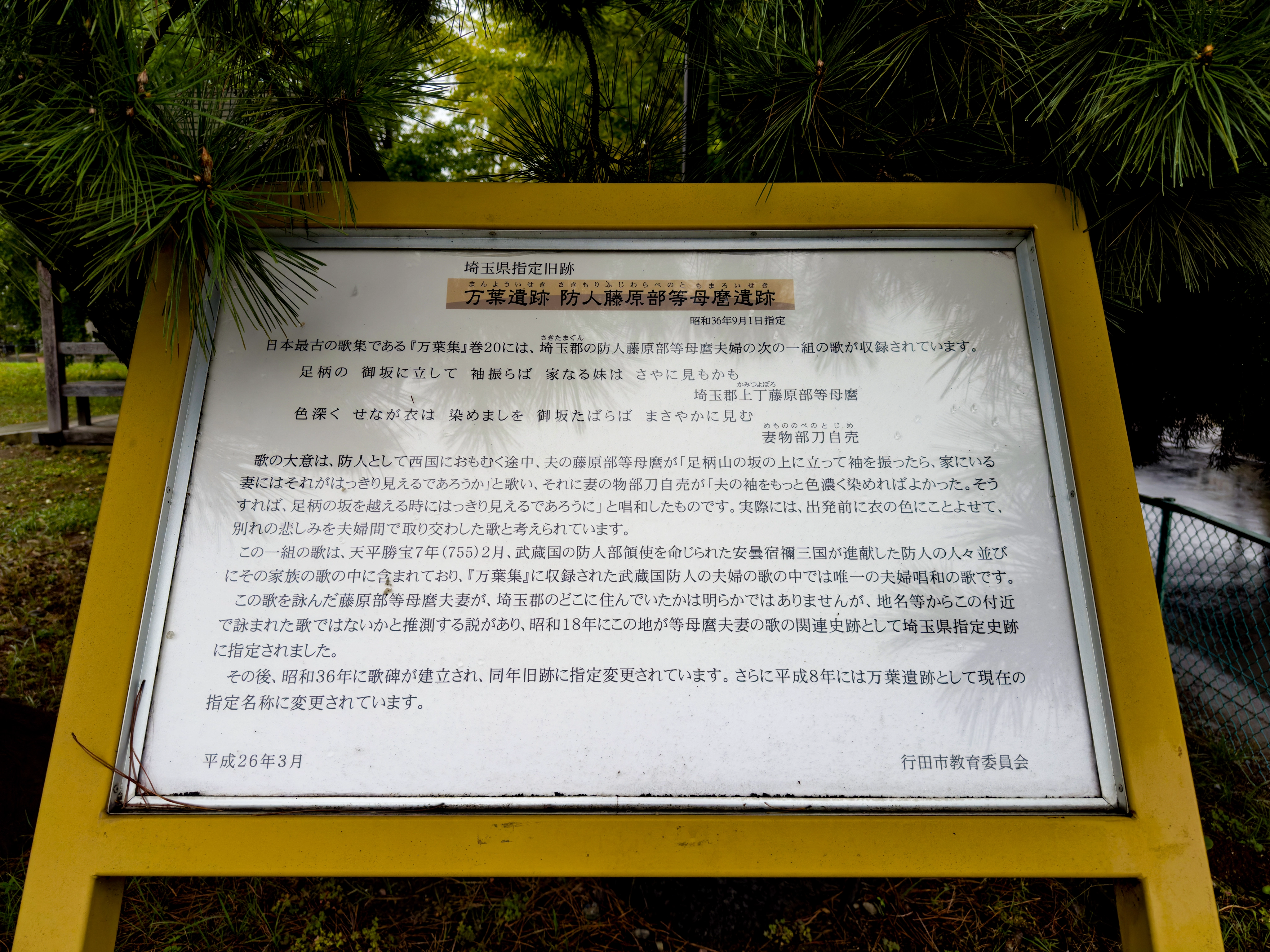 で、この古墳なのだが、よく分からないが『防人藤原部等母麿遺跡』も一緒にある。なんかこの辺の人だったのではないか、ということかな?