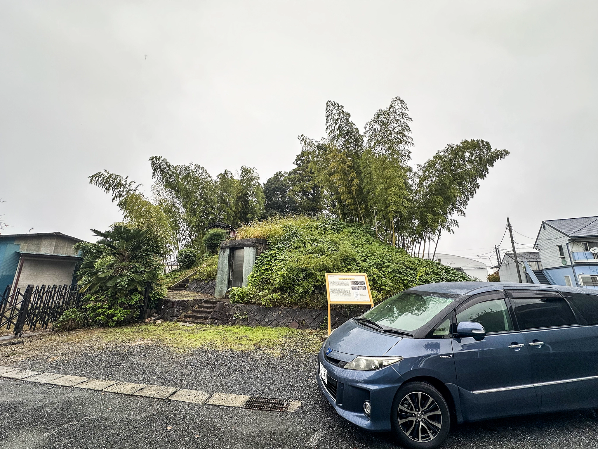 っていうのと、駐車場がないのでアパートの前にもろに車を駐める形になってしまい、何か言われるかなと思ったんだけど、古墳を訪ねてくるのは珍しい事ではないらしく、アパートの住人も「ああ、はいはい」みたいな反応だった。