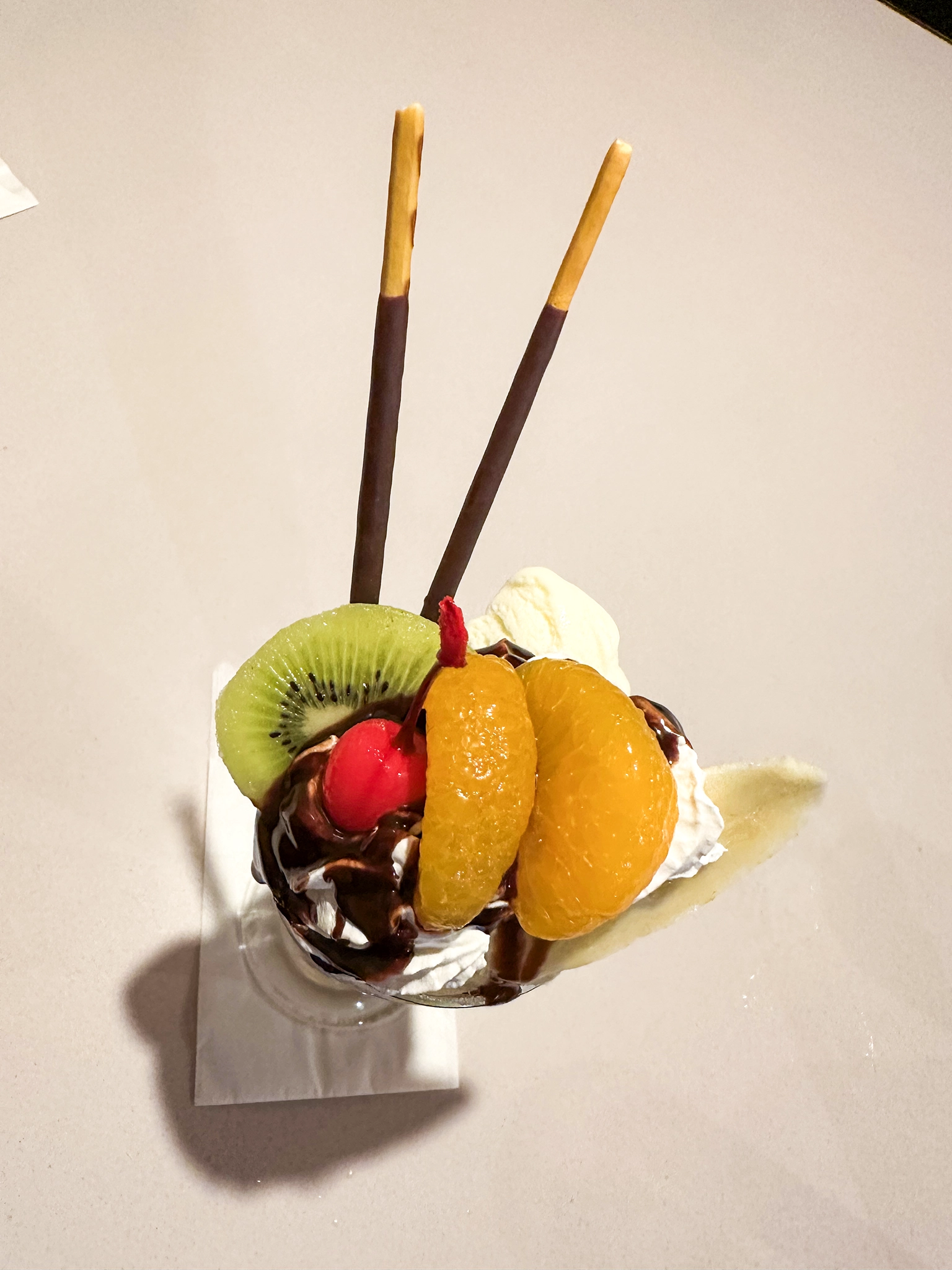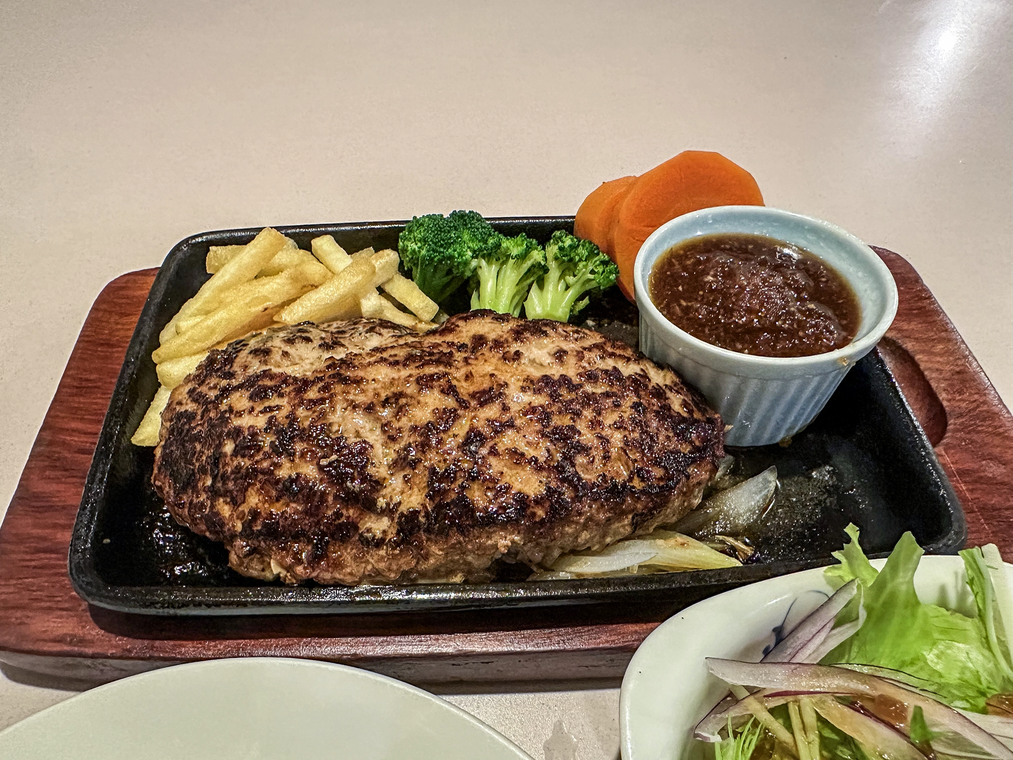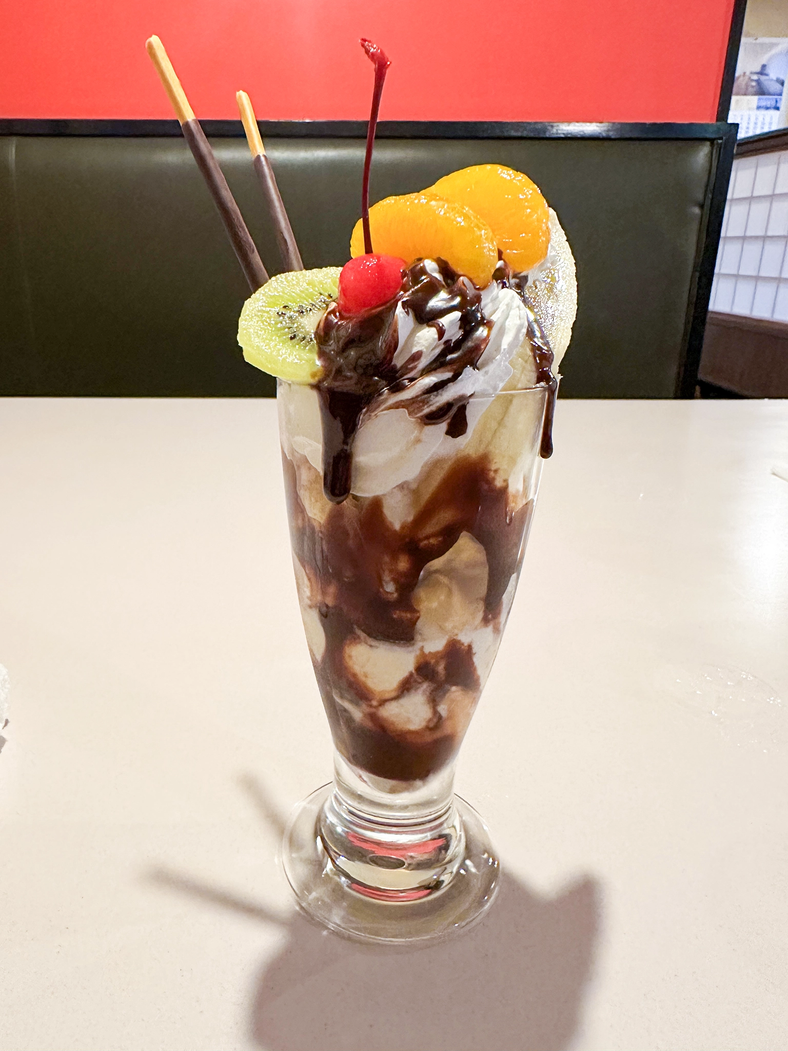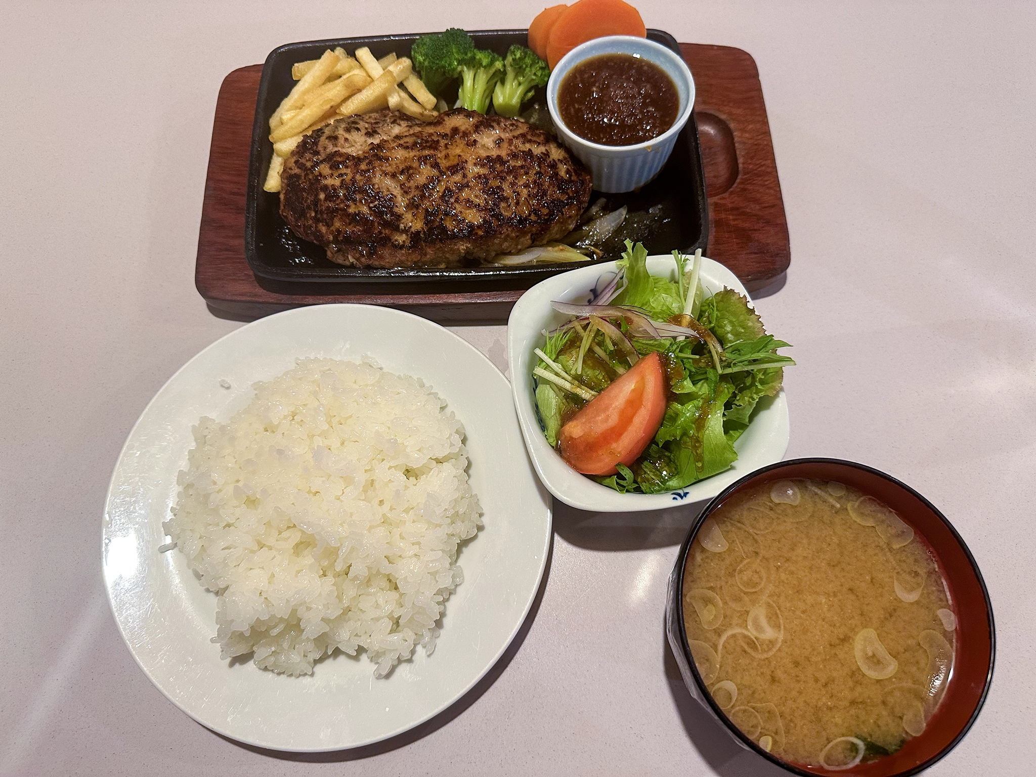 でもハンバーグの肉汁はかなり多く、イイ感じ。デザートのパフェはなんか昭和チック。