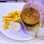 で、イオンに入る時にハンバーガー屋があったので、晩ご飯はそっちで食べる事にする。名前は『King Diner』っていうらしい。なんか店内にバイクが飾っているばかりか隣がガレージになってる! なにこれ、かっこいい!! バイク好きにはとてもいい雰囲気のお店なんじゃないかしら?