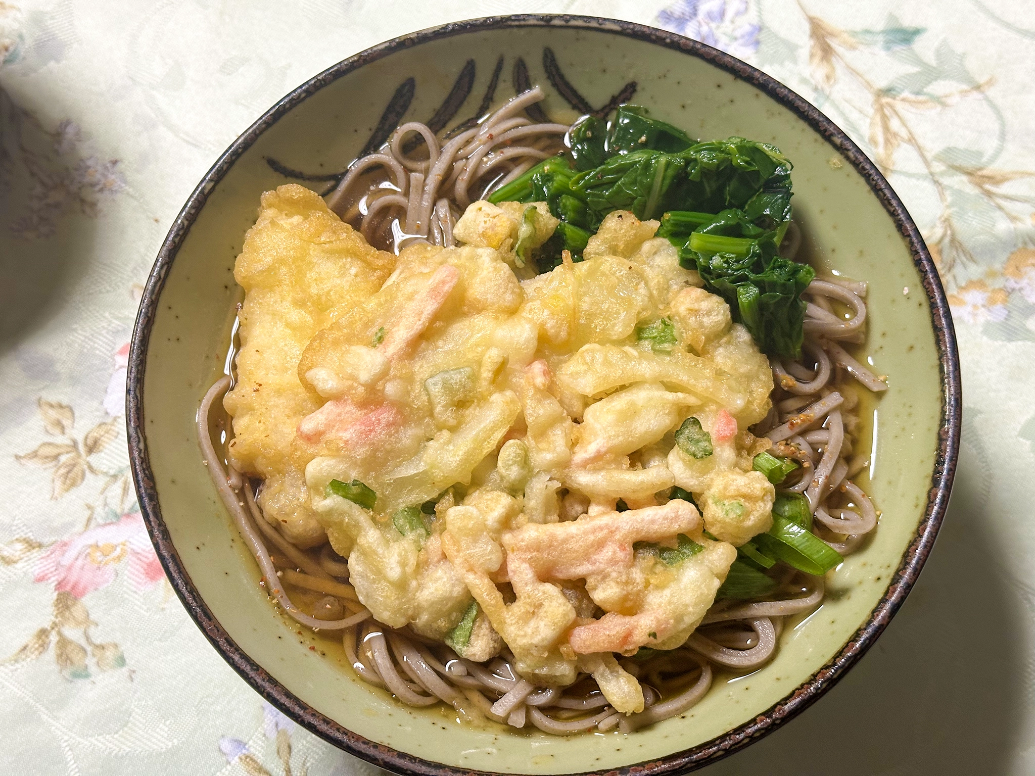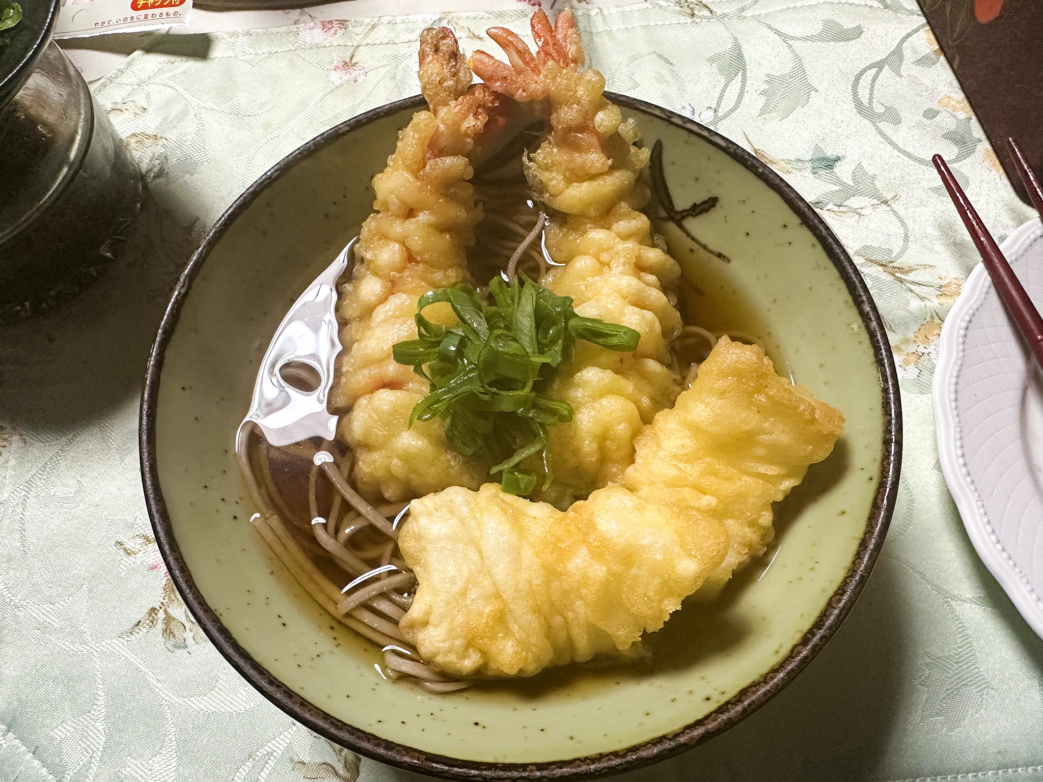 エビもかき揚げも冷凍モノである。