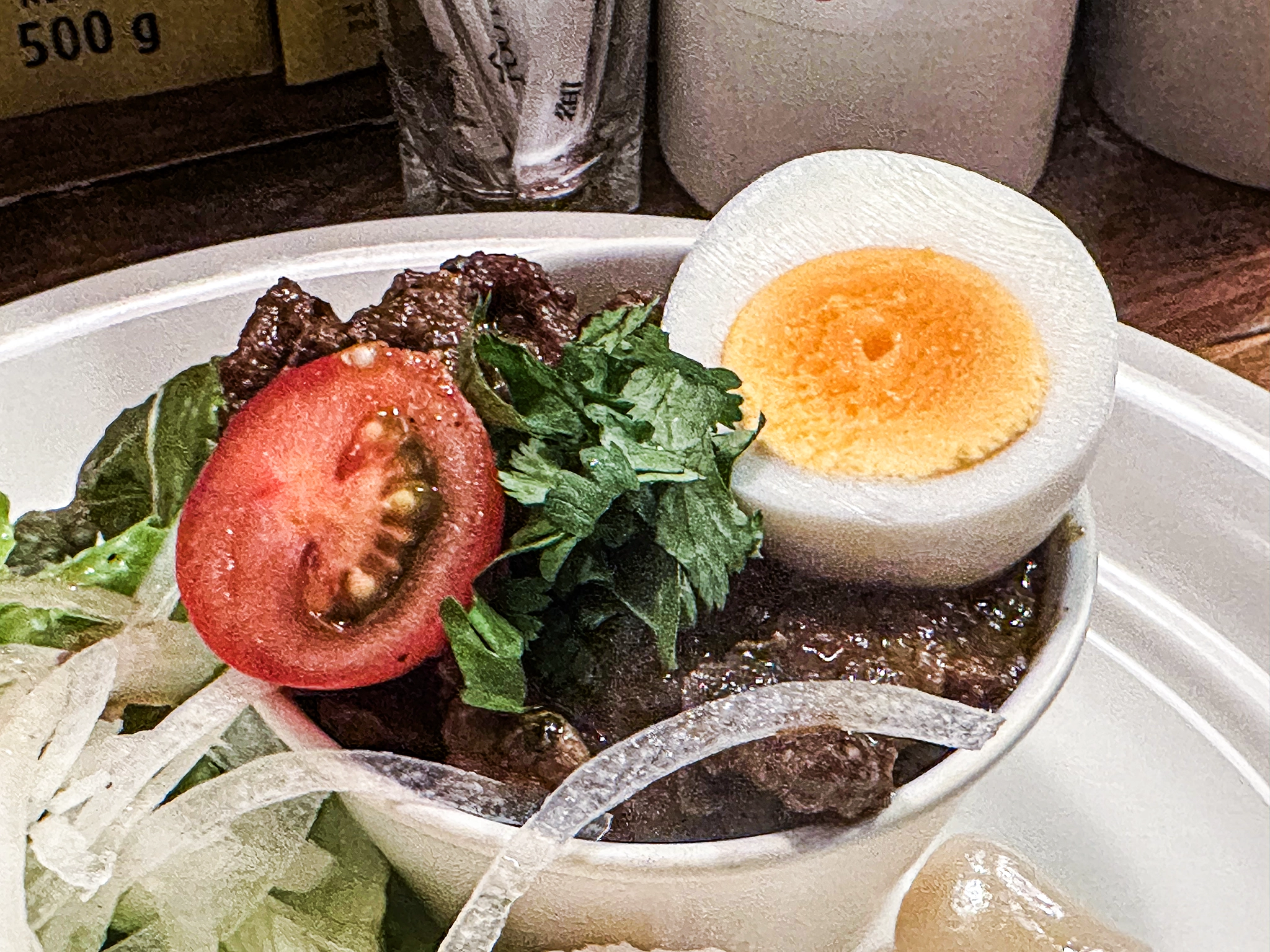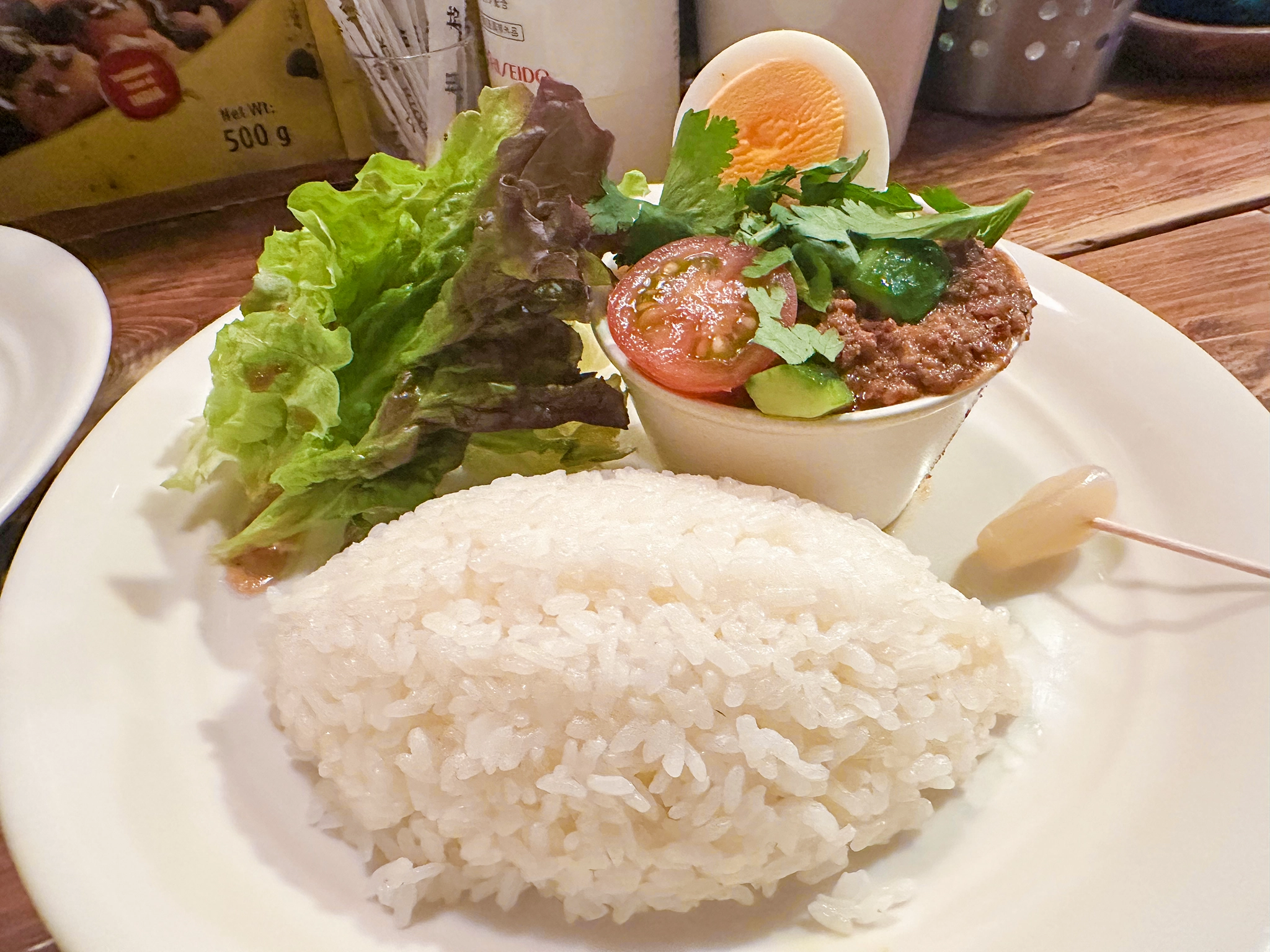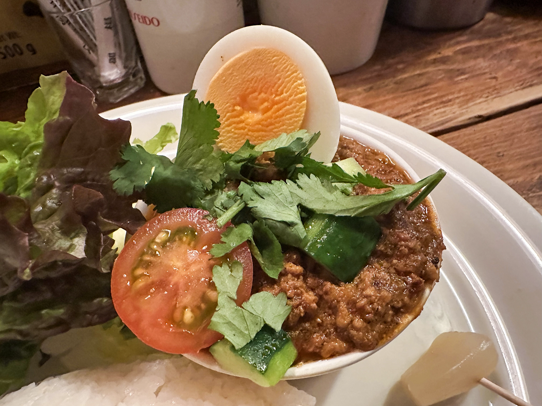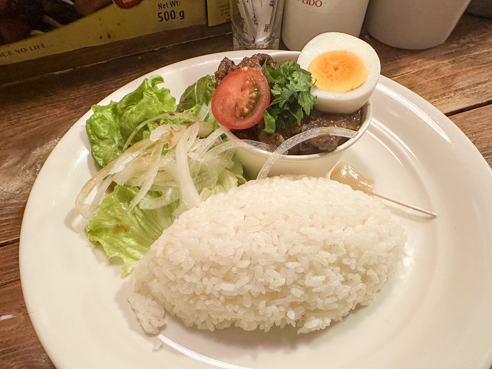 日本のカレーというよりはかなりエスニックに寄ったカレー屋さん。中はカウンター席のみで昼食時間を割けた 14 時頃に行ったのだが並んでいた。まじかー。あと客の回転が余り良くない。なんで? カレーなのに?? 下手すりゃラーメンより提供時間は短いのでは?? と思いつつ、かなり待った。
