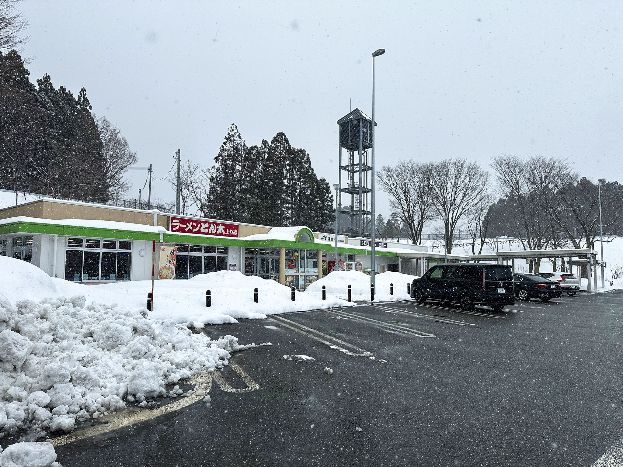 とくに雪がひどかった区間は小布施 P.A. を過ぎた辺りから富山市街手前、立山 I.C. くいらいまでか。ただ北陸道はかなりトンネルが多いので長野県よりは楽だったように思う。