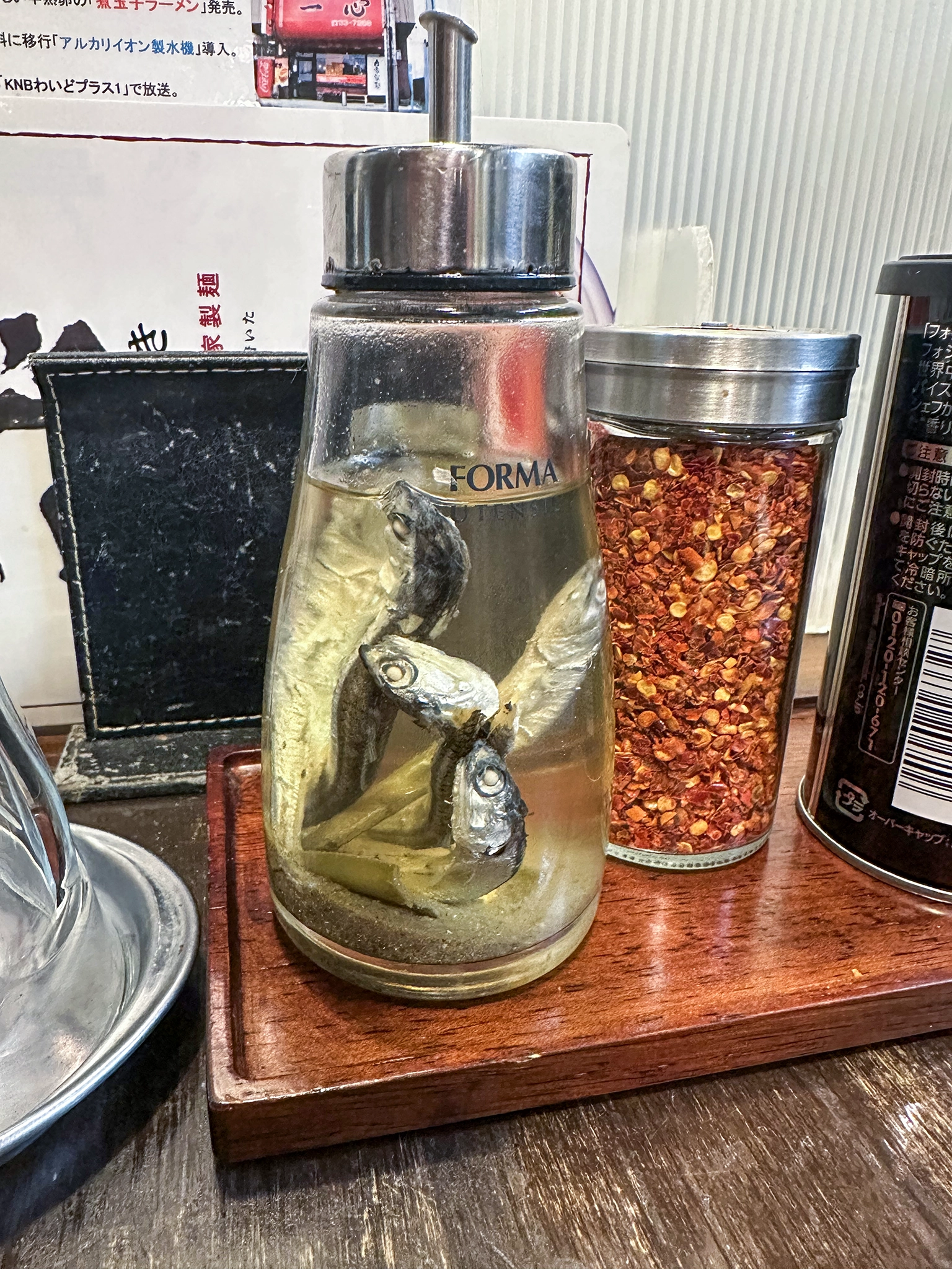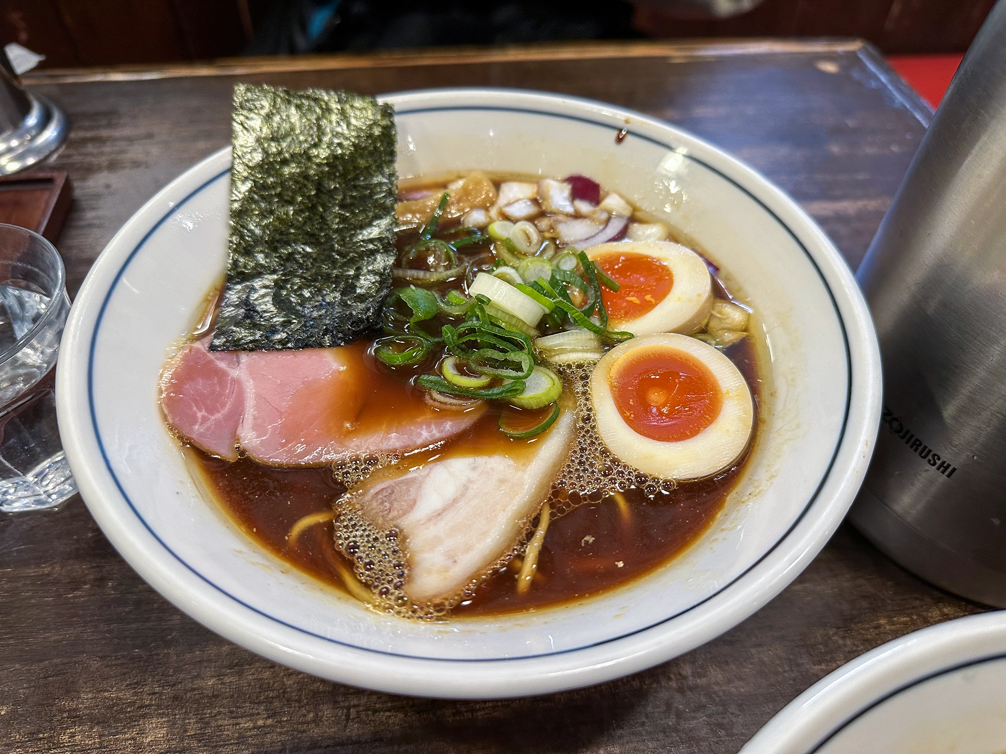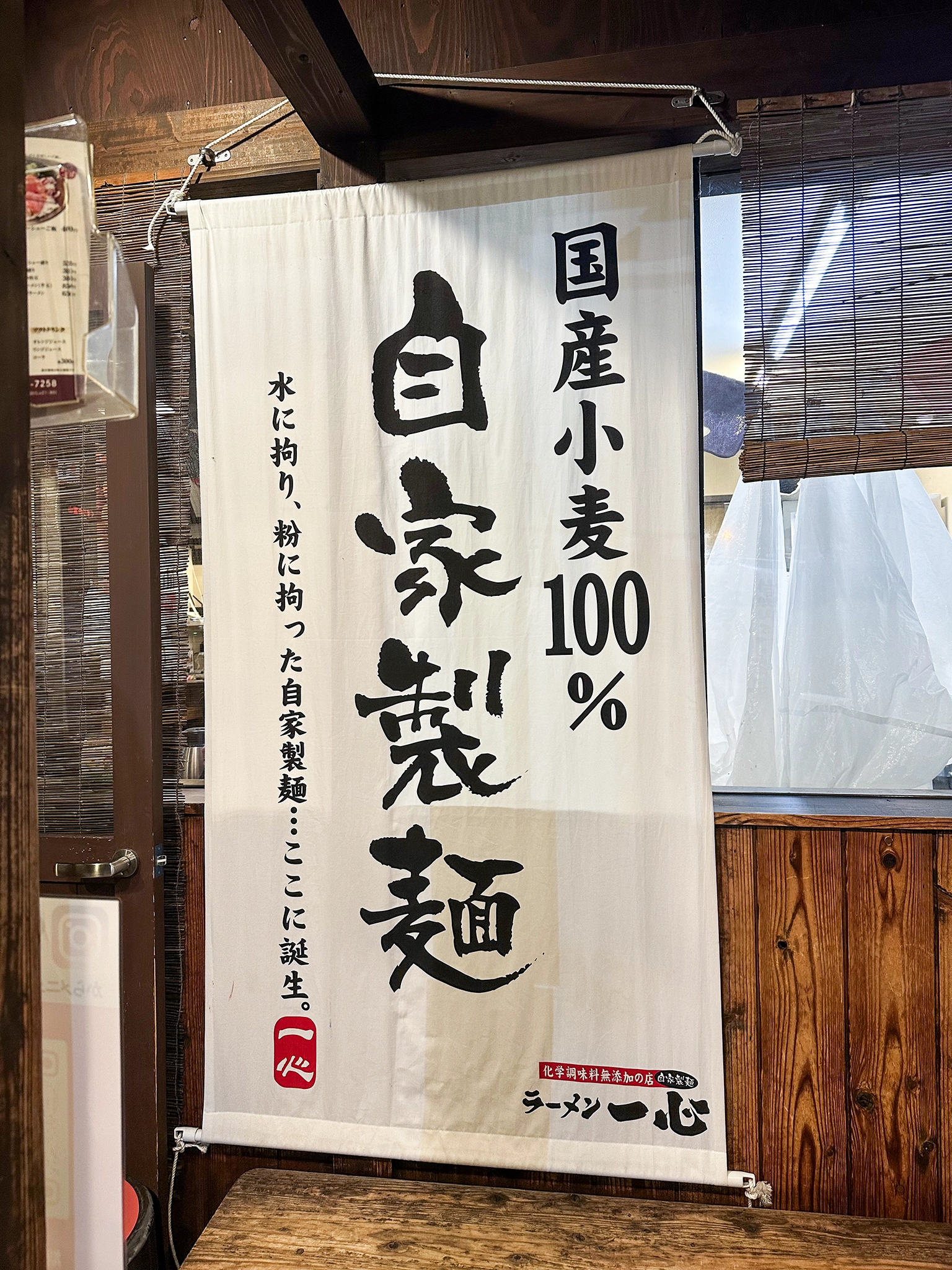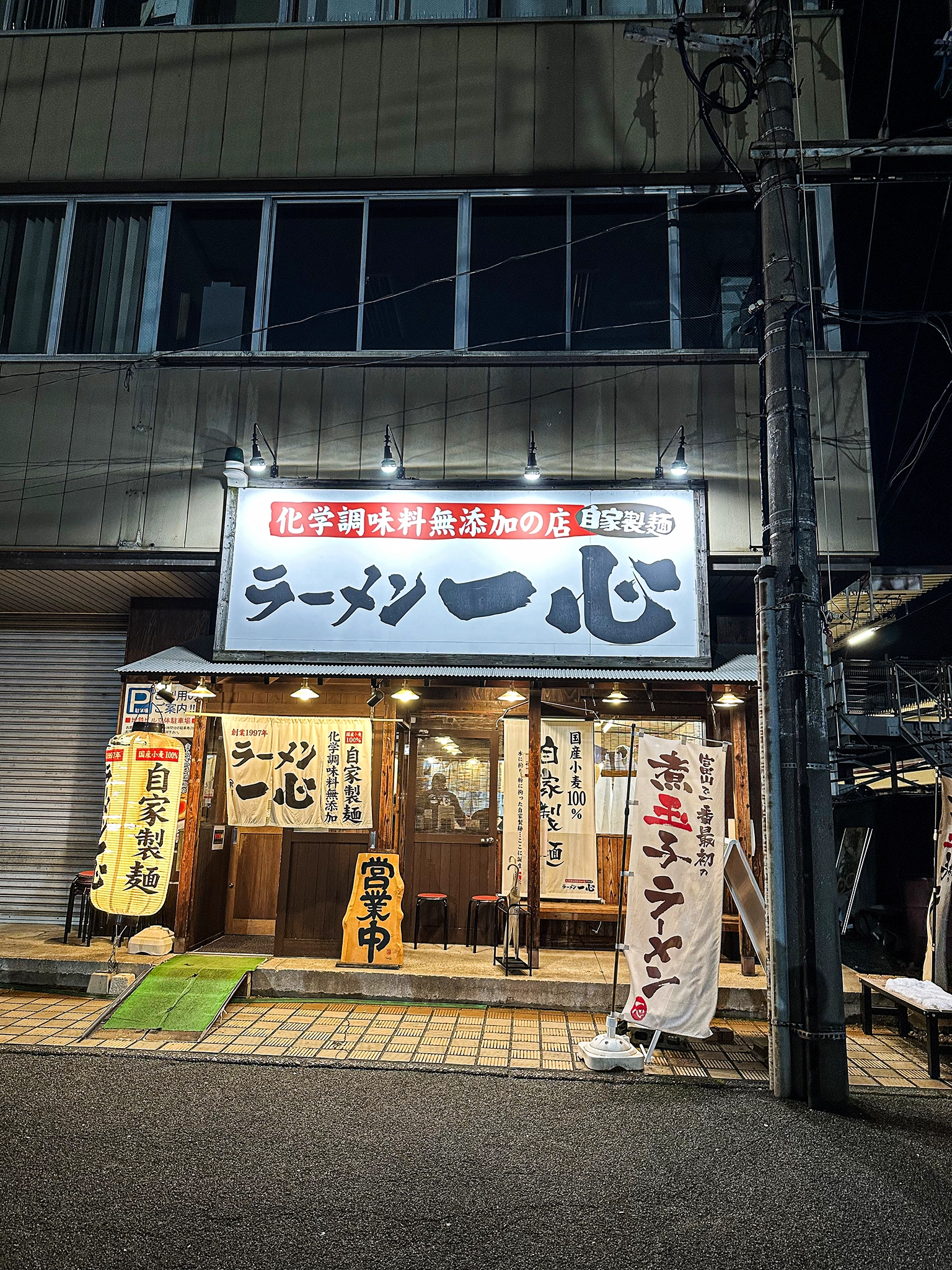 入ったお店は『一心』という富山ブラックのラーメン屋。人気店らしく、20:30 に行ったのにけっこう混んでた。