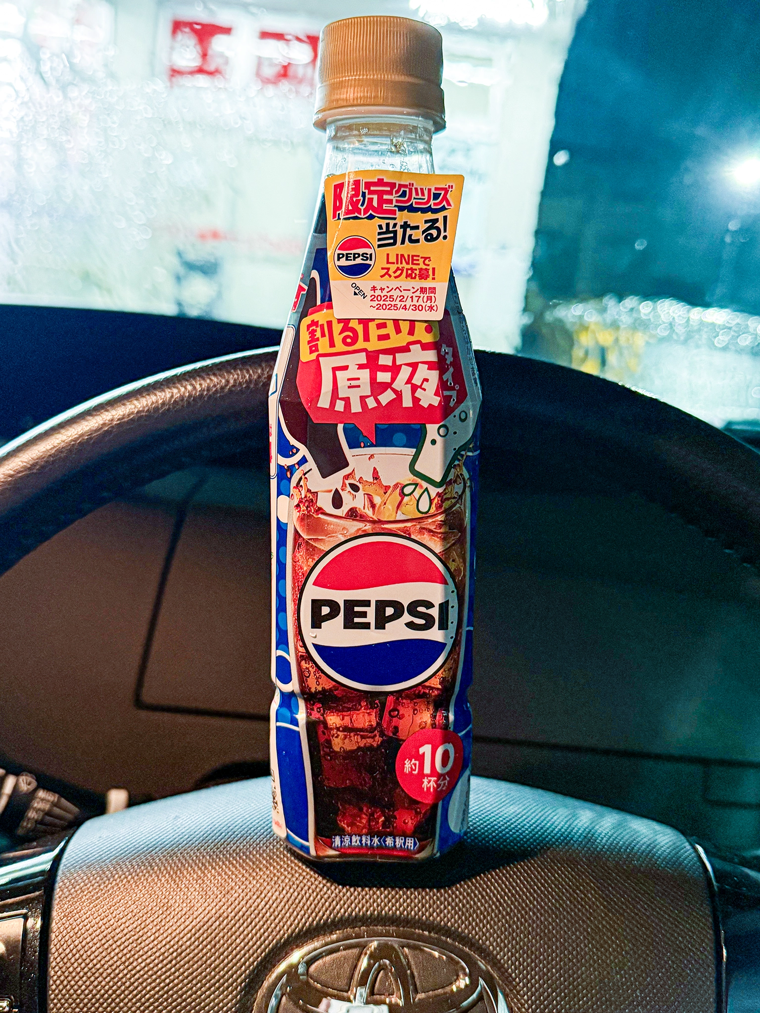 その製品が発表されて(PDF)以来、ずっと探しているものがある。それは PEPSI から発売された、いわゆるドリンクバー用の原液だ。つまりペプシコーラが炭酸水を使って自宅で作れるのだ! これがさー、発売されてからとんど売ってなくて……しかも Amazon とかだとスゲー金額ついてたのよね。また転売ヤーが暗躍していたのかどうかは知らないが、夜中、買い物に出たとき、近くの 24 時間営業のウェルシアで発見した!