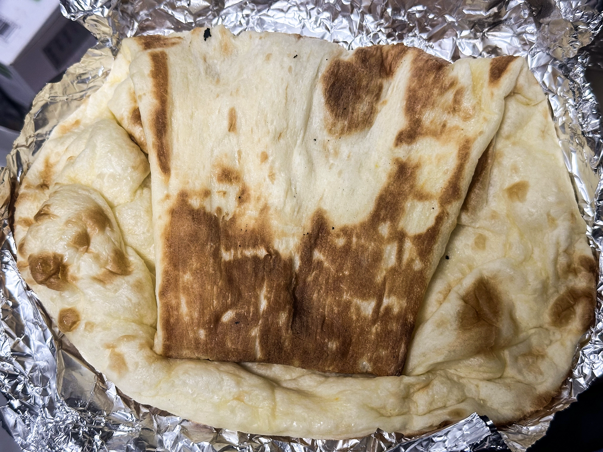 デリバリーだとナンが折りたたまれちゃうのが悲しいね(汗)。あと蒸気吸っちゃって、フカフカ感がだいぶスポイルされてしまっている。三枚目の写真はガーリックチーズナン。チーズナンにさらにガーリックが! 絶対美味いに決まっていると思って頼んだんだけど、記憶に残ってないってコトは……まぁそこまででもなかったのだろう。