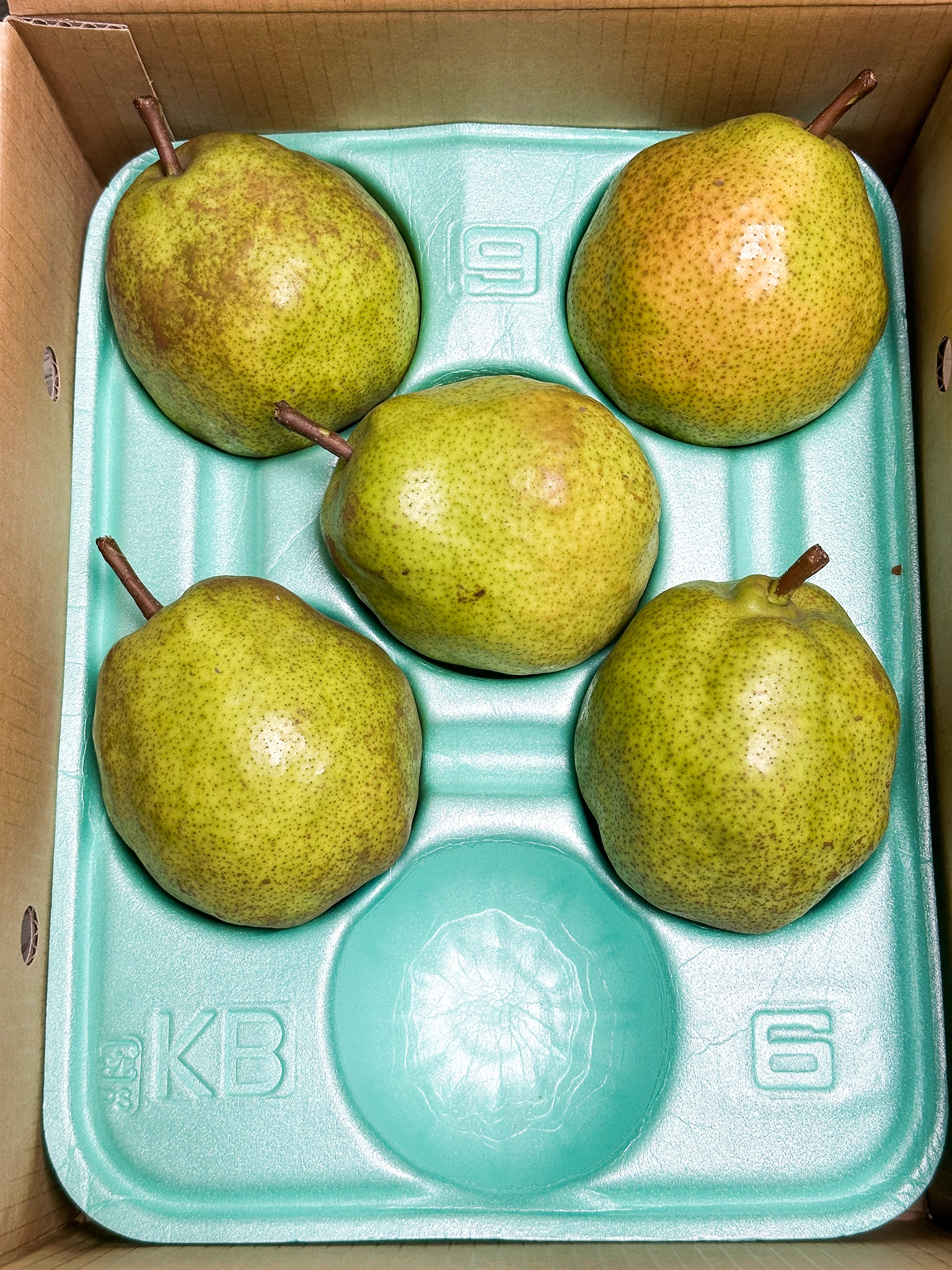 下は毎年お取り寄せしている洋梨と、ドンキでみかけた鍋の素。洋梨はたまたま近所の人が来たので一つあげてしまったので、一つ欠けている(汗
