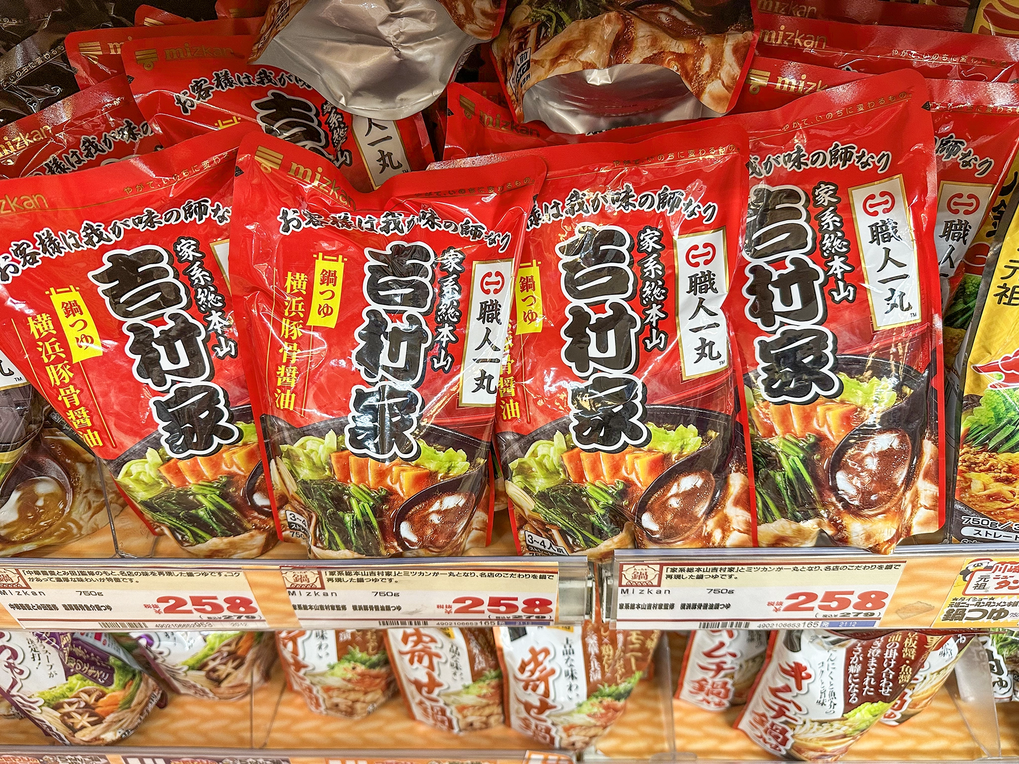 吉村家の鍋の素は笑っちゃって思わす撮ったんだけど、そもそもラーメンのスープは米にあう味付けが多い。なので家系ラーメンのスープを鍋の素にするのは良いアイデアだとおもう。