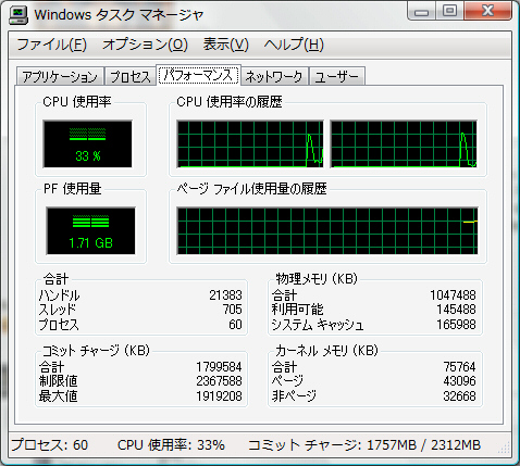 - ということは物理メモリが少なくても、仮想メモリで足りない分何とかしてくれるのかな? -- へぽかる?