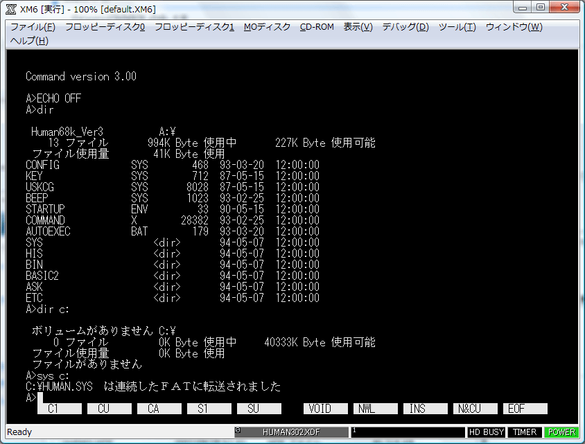 その後、2 ドライブ目にバックアップ FD を入れる。この当時の PC は FDD が 2 台ついているのが普通だったのだ。