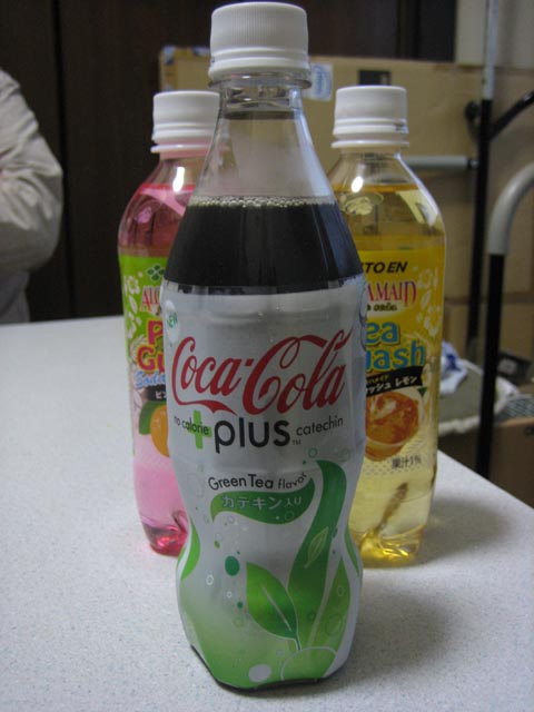 夕方から打ち合わせがあったんだけど、みんなが飲むためのお茶とかを買い出しに行ったのね。で、そこで見つけたゲテモノ系飲み物を買ってきた。カテキン・コーラは確かに味がちょっと違う。他の二つはまだ飲んでない。江古田事務所に持って帰って、とりあえず冷蔵庫に入れてある。