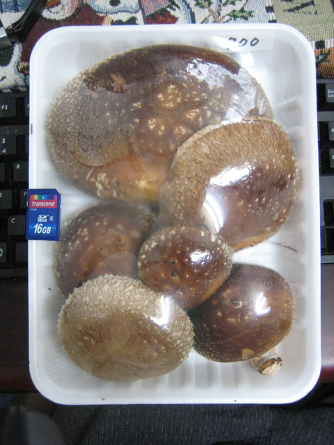 ボリュームたっぷり。ちなみにここではボクの腕ほどもある松茸なんかが売っている。お値段 4 万円だったかなぁ。傘が開いているのと開いてないのがあって、開いてしまっていると同じ大きさでも 1 万 5000 円くらいで買える。