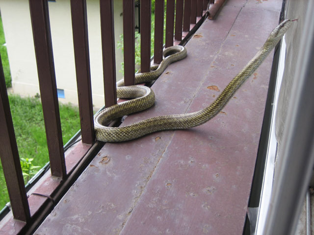 洗濯物を干すわずかなベランダもどきがあるんだけど、そこにヘビが絡まっていた!