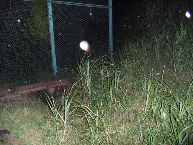 ごめんなさい、光ってるのはフラッシュに反射した雨粒です……orz