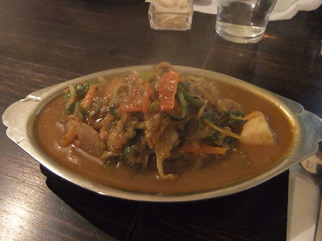 頼んだのは店の名前がついているそのままズバリ「ボンベイカレー」。メニューには「中辛・野菜」と書いてある。