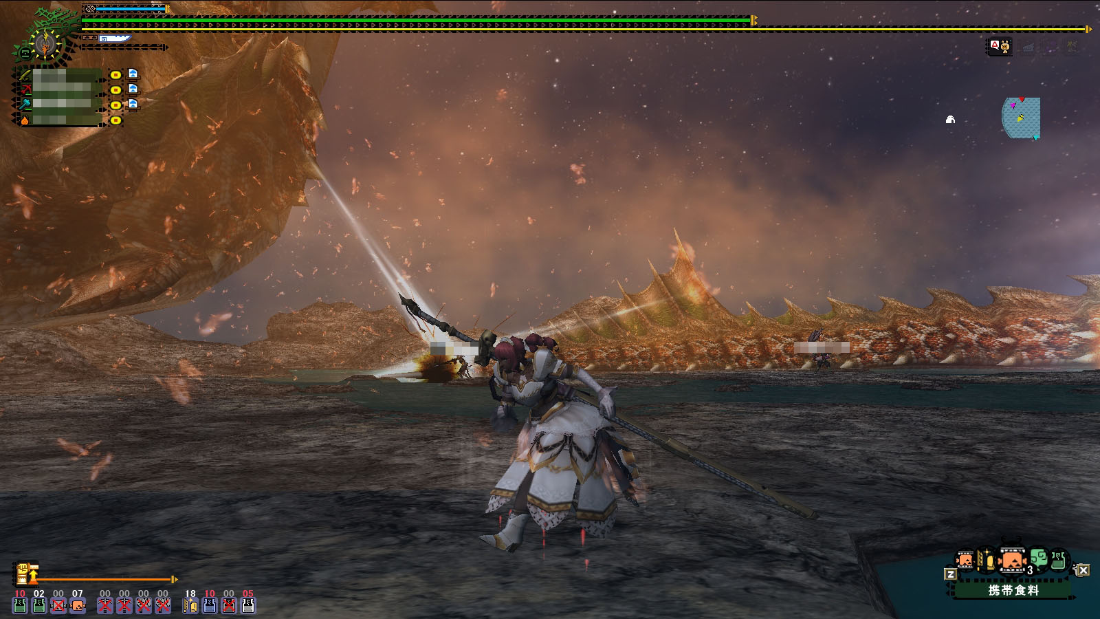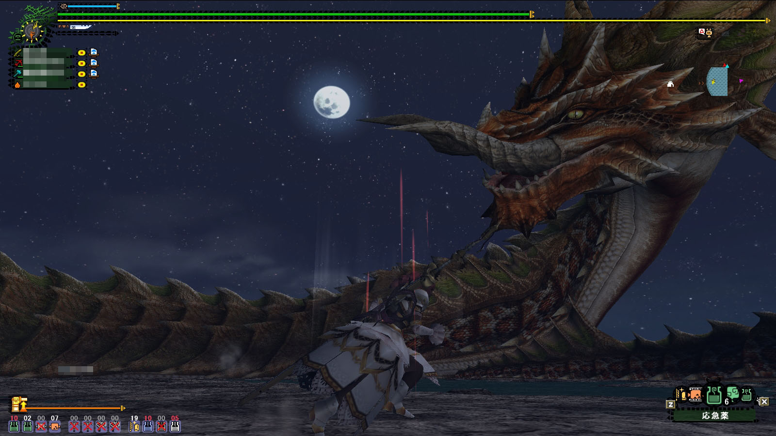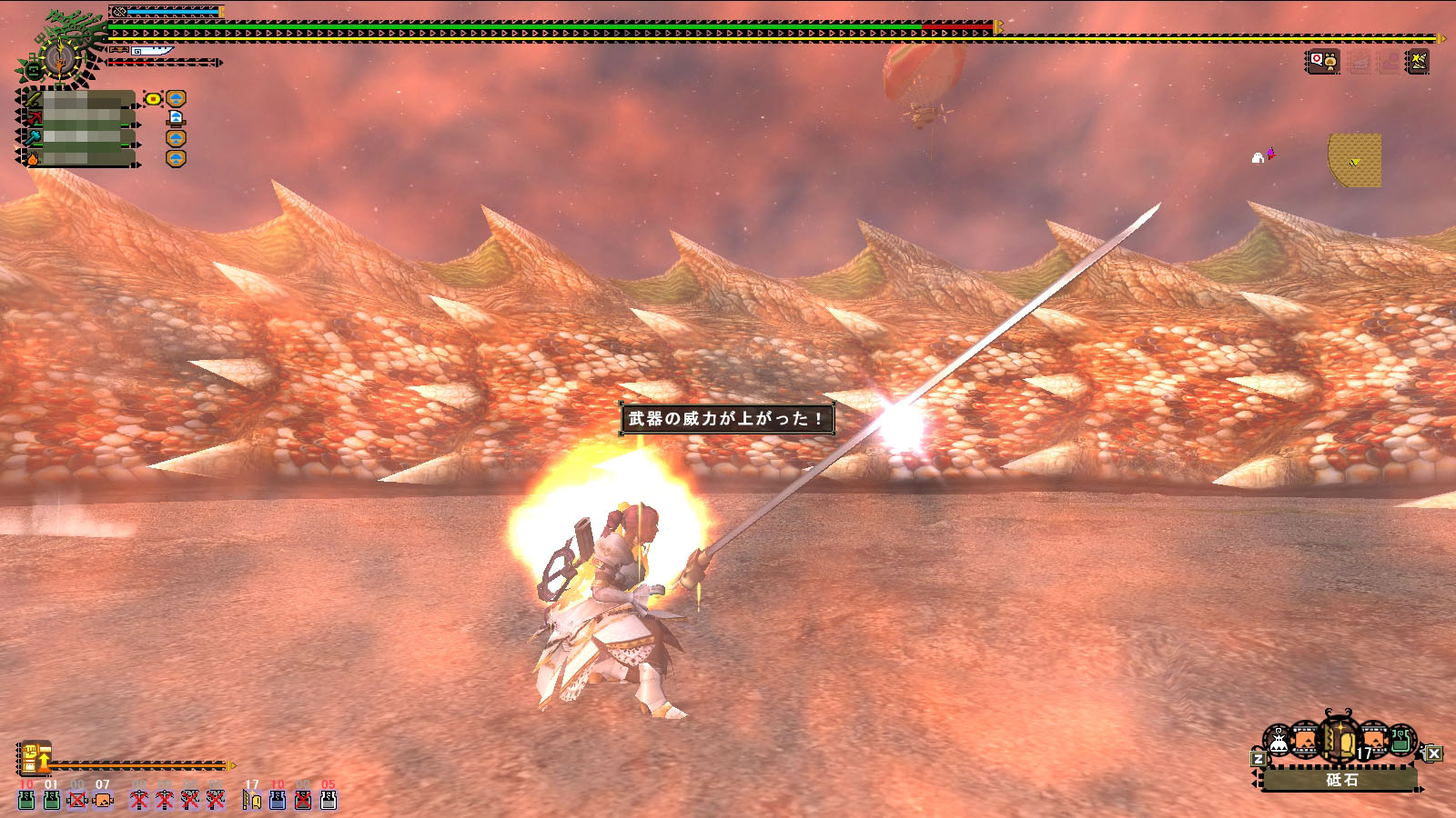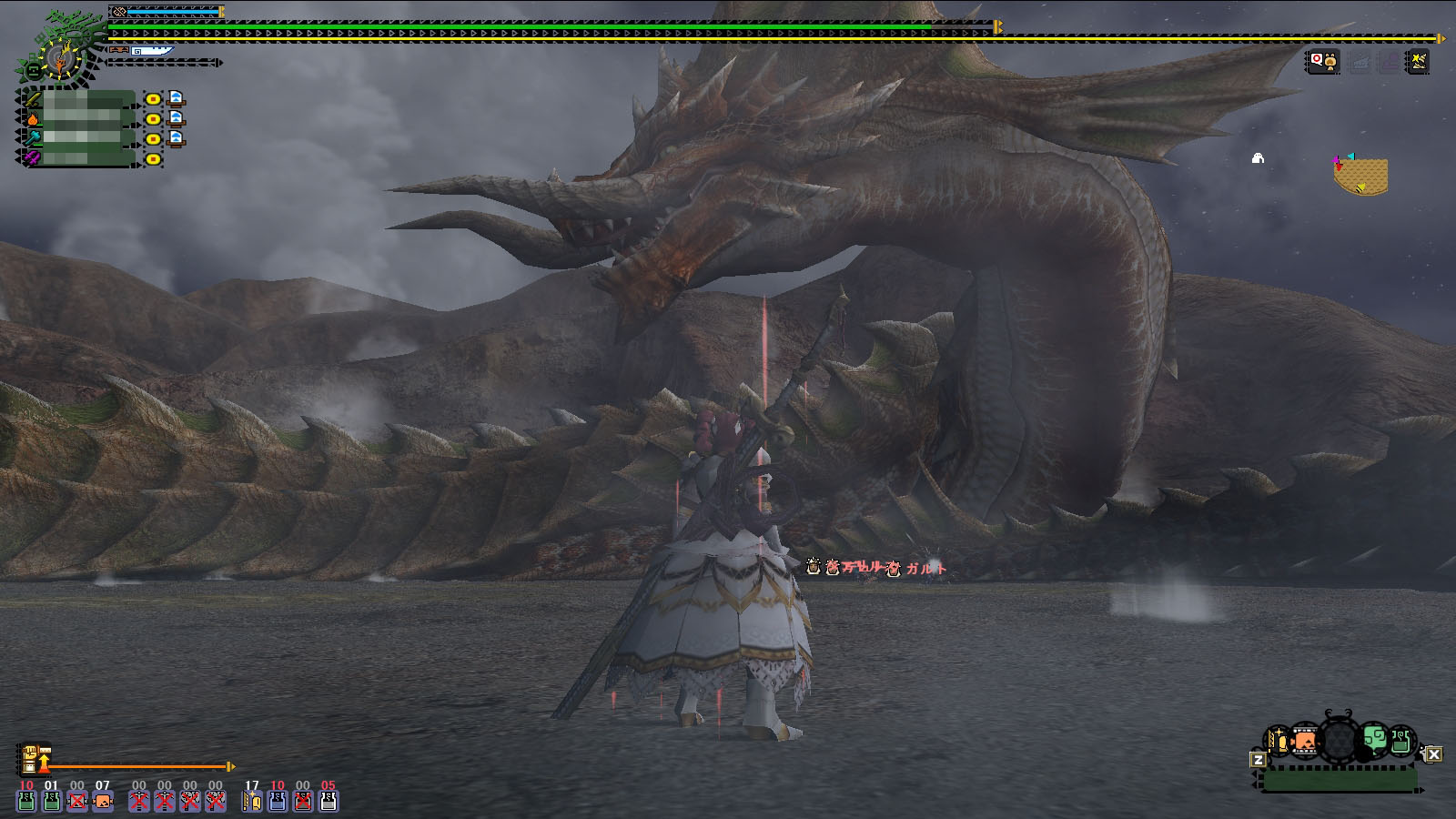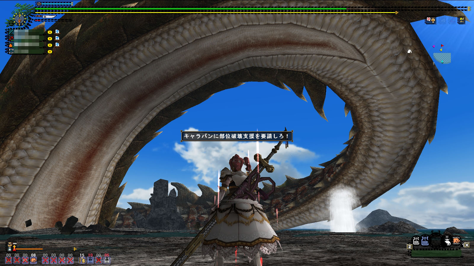 ラヴィエンテ戦に参加してきた。 最大 8 パーティで倒す、超巨大モンスターのことである。ただし、モンハンには代わりはないわけで、飽くまでもプレイヤーの前では 4 人 PT として展開される。つまり見えない場所で他の PT も戦っているという設定である。