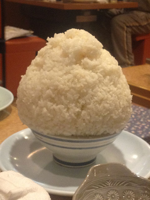 おもしろいのがご飯。各自が頼むことも出来るんだけど、てんこ盛りにしてみんなで食えというスタイルのものもある。これはおそらくご飯の注文が頻繁で、いちいち盛るのが面倒だからだろうと推測する(笑)。