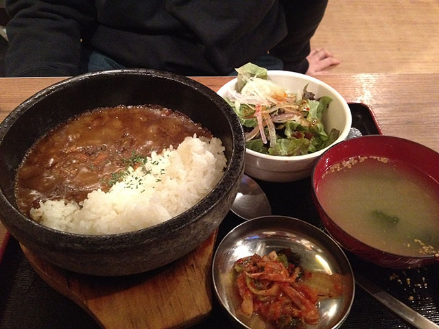 一緒に行った同僚の頼んだ石焼き辛ーの方が美味しそうだったなぁ。石焼きビビンバみたいな感じで中がカレーなの。かき混ぜて食べるんだけど、お焦げができて、、お焦げ好きにはたまらないカレーだ。くそう(ぁ