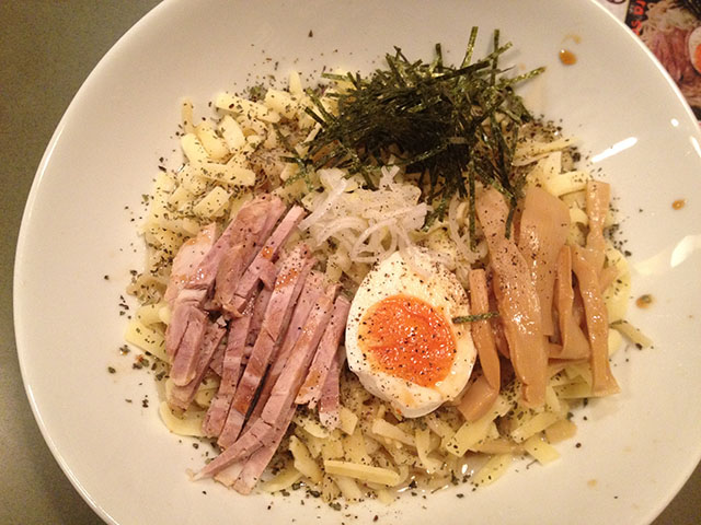 チーズとバジリコの油ソバ。何というイタリアンっぽい油ソバ!