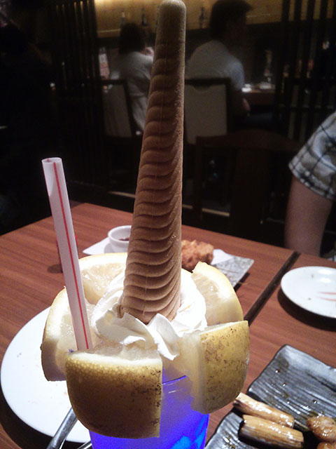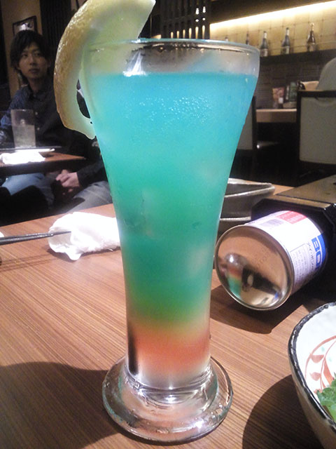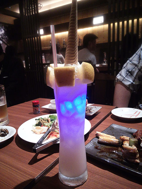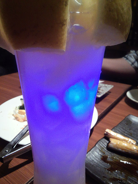 青い光る飲み物の仕組みは、発光ダイオードが入っている氷に模したプラスチックの塊だった。