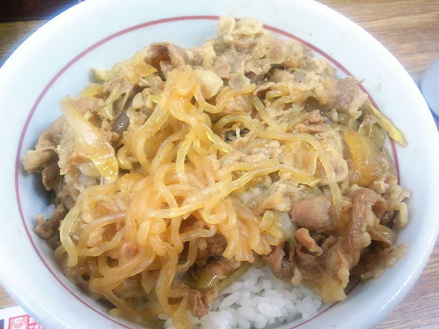 浅草橋駅高架下に[[なか卯:http://www.nakau.co.jp/]が入ってるんだけど、ここって 24 時間営業じゃないのよね。なか卯って何処も 24 時間だと思ってた。まぁそれはさておき、なか卯と言えば親子丼なんだけど、牛丼を頼んでみた。 そしたらなんかイマイチだった(汗)。 そもそも糸こんにゃくいれるか~?