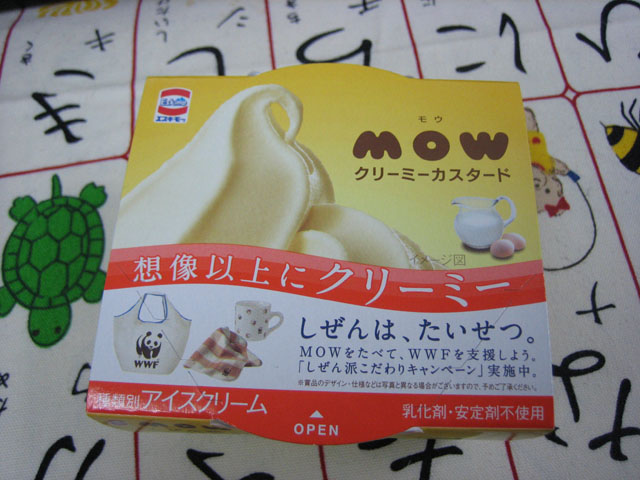 今、我が江古田事務所の冷凍庫を占有しているのは、MOW のクリーミーカスタード味だ! ハーゲンダッツよりはくどくない。 いや、充分くどいけど(ぉ こいつがたんまりと冷凍庫に入っているじぇ!