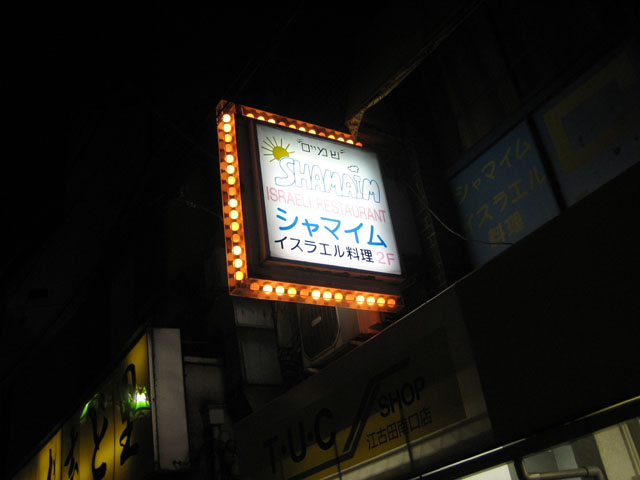 江古田に日本唯一、イスラエル料理専門店がある。もっとも日本唯一の部分は、自称だけど。 時々行くんだけど、今まで写真をサイトに載せたことはなかったので、今回バッチリ撮ってきた。 内容的には基本的に中東料理。いわゆるトルコ料理を想像してもらえればいいと思う。ピタパンにケバブ、そしてひよこ豆を使った様々な調味料。値段はメイン(肉ともう 1 品)にライスまたはピタパンとサラダでだいたい 1200 ~ 2000 円くらいかな。2100 円でシェフお任せ食べ放題ってコースもある。