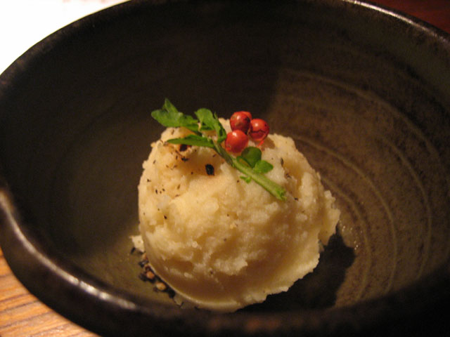 突き出しのマッシュポテト京漬け太刀魚のあぶり