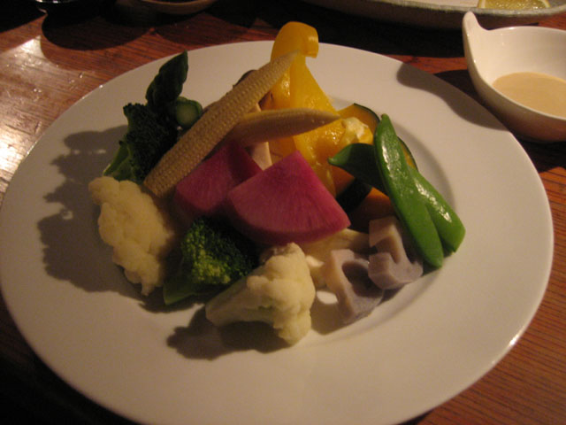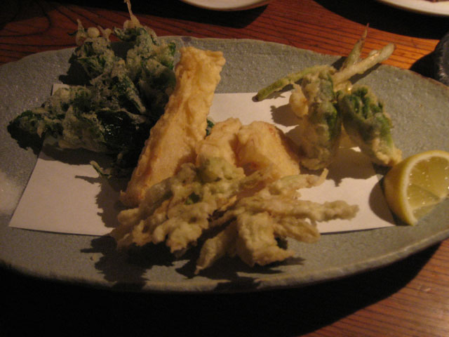 山菜の天ぷら温野菜ゴマドレ・バルサミコ酢・藻塩