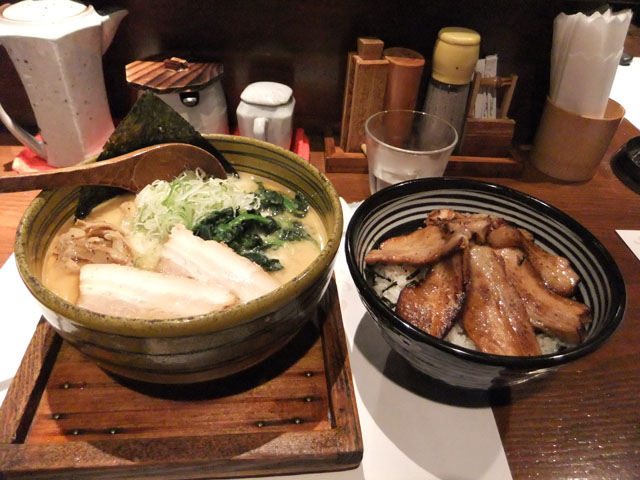 真風(まじ)、再び![]() 仕事が一段落した……というか仕事の集中が切れたところで、ちょうど知人も仕事の一区切りがついたので、晩飯食おうってことで、昨日食べられなかった鯛塩を食べに行くことに。と言うわけで「真風 今回はちゃんと鯛塩ラーメンを選んだ。あと替え玉を選ばずに、チャーシュー丼にも挑戦。 まず鯛塩ラーメンだが、こちらもコラーゲンたっぷりでコクにはとんこつを使っている。一口目にしみてくるのは上品な魚出汁で、昨日食べた醤油にも増して魚の嫌みさがない。そしてとんこつのコクと油の甘みが広がる。 一方のチャーシュー丼もね、しょっぱ甘いタレとかではなくて、とろけるようなチャーシューにこれまた油の甘みとまろやかさなんだけど、ガッツリ胃に来る代物であった。あとねー、チャーシュー丼、量多いよ! これとラーメンはつらい(汗)。チャーシュー丼だけで充分おなかいっぱいになる……orz 次は同じ通りにある中本 #article |