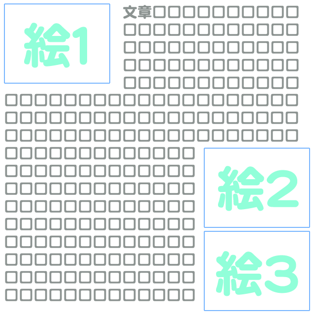 問題は「絵2」と「絵3」なのだ。文章が終わる下辺を基準に画像を右寄せ回り込みで配置したいのだ。これ、ここだけの問題じゃなく、フッタにも使いたいのよね。要するにブラウザの一番下辺にフッタを表示したい。けど、もちろんブラウザの高さよりも記事が長くなってしまった場合は、記事の一番下にフッタを置きたい。