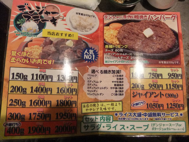 | セットのスープとサラダ | デンジャーステーキ 400g |
