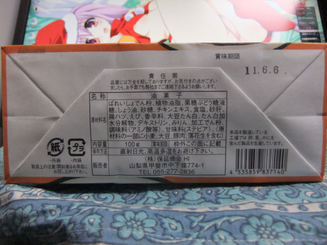 写真は甲府で買った、鳥もつチップス。山梨県の名物に鳥もつ煮があるとは現地に行くまで知らなかった。鳥もつ煮