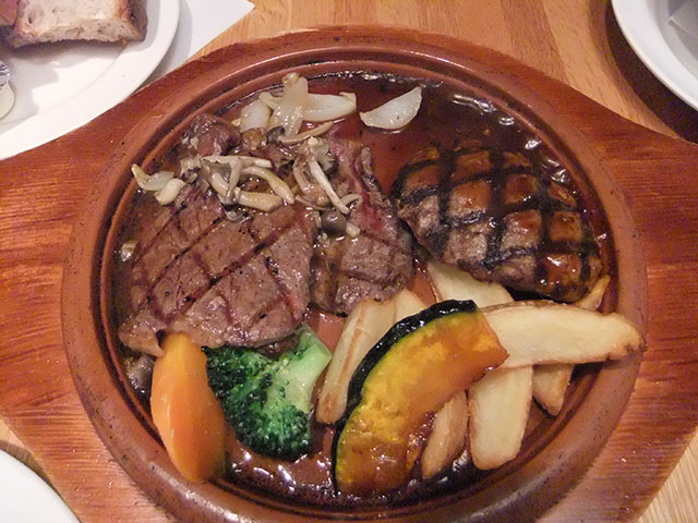 あとねー、サラダ・バーの野菜がかなりショボイ(汗)。 シズラーに慣れてると、かなり貧相な野菜ばっかりだった。 そして料理はフツー(ぁ 不味くはないし、焼き加減もちゃんとしていたけど、取り立てて美味しいわけでもない(汗)。 あと、料理をもってくる順番はまー悪くないけど、食い終わってないのにどんどんもってくる。メインはせめて前菜食べ終わってからにしてよー。テーブルの上に載りきらないよ!! そして値段が高い。ただこれは正確には、高い食べ方をしてしまった……というのが本当の理由である。 食べ終わってから、もっと安く済ませる方法はあったなぁといろいろ解った感じ(汗)。 そんなわけで、次回はもっと安く且つもっと美味しく食べられると思う。