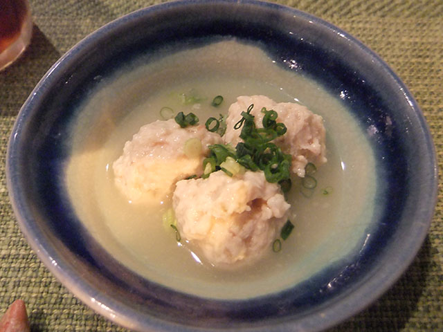 つきだし 薩摩揚げ タコの天ぷら 豚の燻製 コラーゲンたっぷり! 具 薬味とつみれ 食べ終わるとスープが透明に