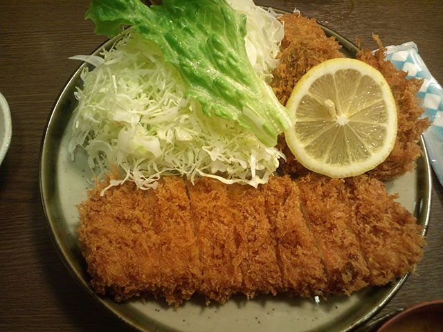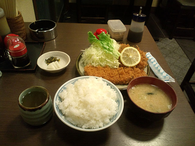 ただ、店に入った瞬間しまったと思ったのが、そもそもとんかつ屋は閉店間際に行ってはいけなかったのだ。と言うのも油がだいぶ使い古されており、出てくるカツもそれで揚げられてしまうからだ。それは店に入った時に香った油の匂いで解った。まぁでもいいか、と思いつつ席に座り、ロースのセットと牡蠣フライを頼む。