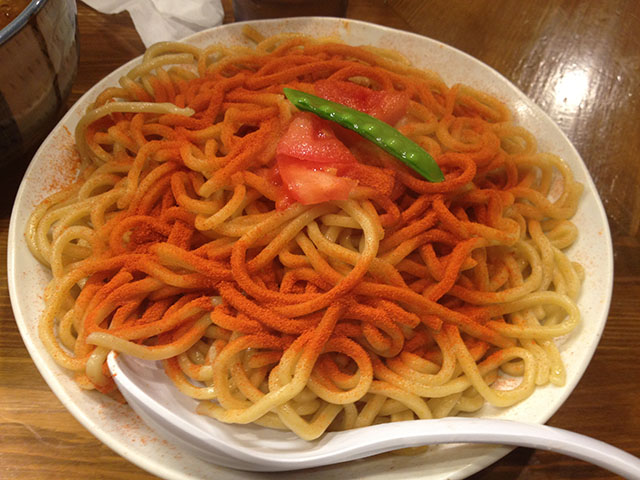辛つけ麺ってのを頼んだんだけどさ……写真を見た通り、唐辛子振りかけてあるだけ……orz
