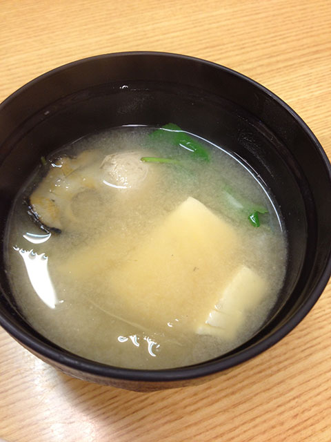 驚いたのが味噌汁。なんと牡蠣が入っていた。