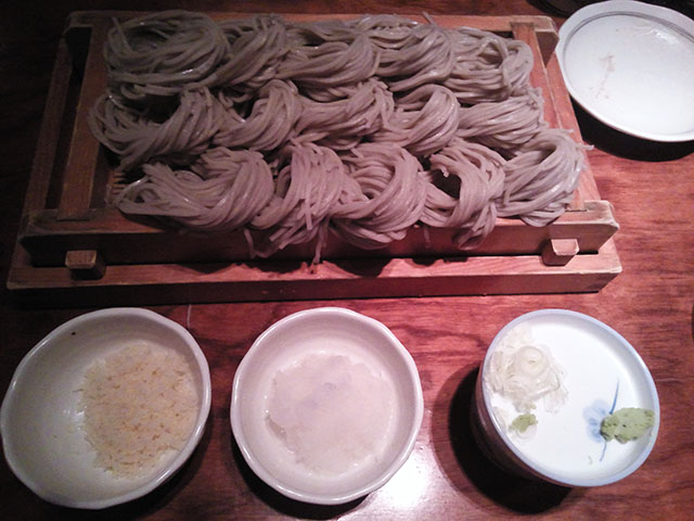 もう一つありがたいのが、飲み屋なんだけど、締めに蕎麦だけ食べに来る客も多いと言うこと。これは何を言いたいかというと、ボクのようなお酒を飲まない人間も気兼ねなく入れると言うことである。現にボクは初めてと言うことで色々な料理を注文してしまったが、周囲のお客さんは蕎麦だけ食べるとさっと帰っていく。居酒屋なのになかなか客の回転が速い店であった(笑)。