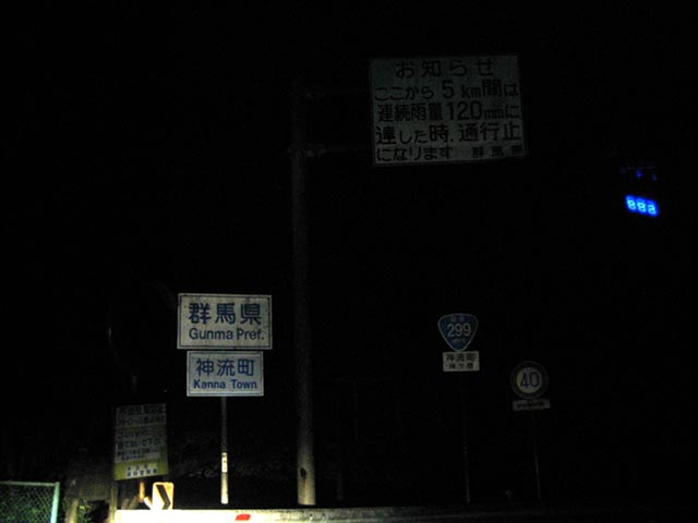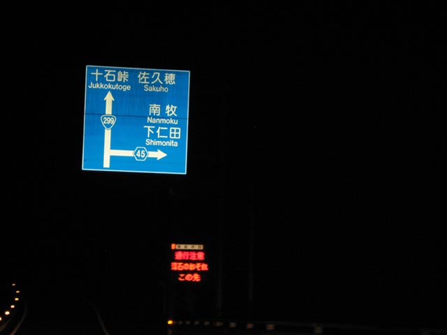 正直秩父までは結構車がいて、2 時間がかかってしまった。群馬県の神流町、R462 との交差点に到着したのが 23:37 。そして佐久 IC に乗ったのが 0:54 であった。
