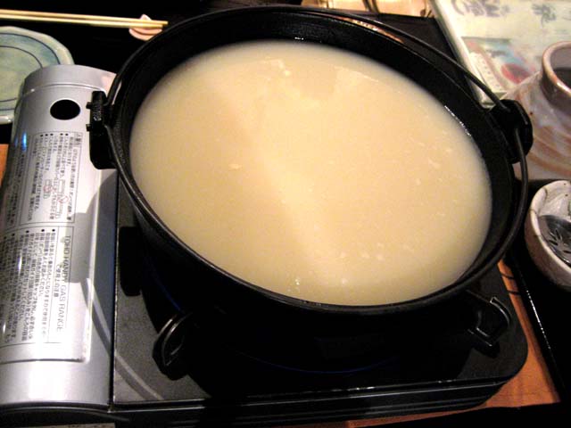 博多風水炊きがメインの料理。でもここはどちらかというと居酒屋で、焼酎の種類が豊富。ボクはお酒をやらないので、ちょっと残念。でも水炊きも充分おいしい。鳥の鍋で、スープは鶏ガラ。スープは真っ白だ。博多風というから、とんこつなのかと思ったら、鶏ガラだそう。