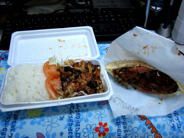 メニューはケバブとごはんのお弁当の二種類があって、お肉は鳥と牛を選べる。豚はともかく、羊じゃないのがちょっとびっくり。牛なのかー。ドネル(混ぜた肉)はなかった。
