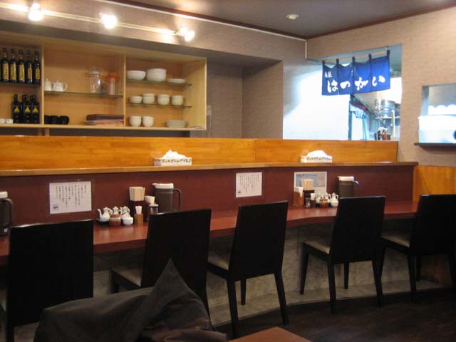 店内はラーメン屋と言うよりはなんだかバーみたいな雰囲気。 お姉さんの気配りが色々行き届いていていいんだけど、お姉さん自身はちょっと、ドジッ子っぽいぎこちない感じが終始漂っていた(笑)。